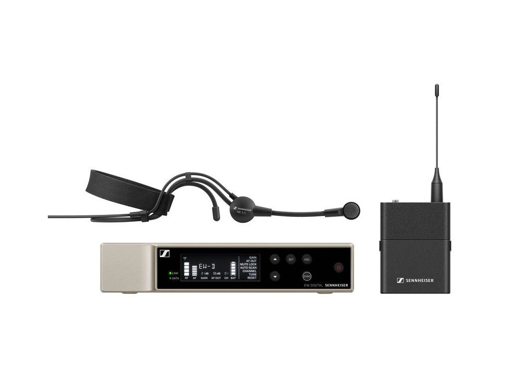 EW-D ME3 to bezprzewodowy, cyfrowy zestaw mikrofonowy składający się z odbiornika rackowego, nadajnika bodypack i mikrofonu nagłownego do prezentacji, aerobiku i muzyki na żywo. Mikrofon nagłowny o charakterystyce kardioidalnej idealnie sprawdza się również w głośniejszym otoczeniu, gdzie mikrofon kierunkowy wychwytuje tylko dźwięk dochodzący z ust mówcy i tłumi dźwięki otoczenia. Za pomocą przełącznika MUTE na nadajniku można w razie potrzeby wyłączyć (wytłumić) sygnał. Na nadajniku, poza włącznikiem, nie ma żadnych innych elementów sterujących, wszystkie parametry ustawiane są na odbiorniku lub z telefonu komórkowego bądź tabletu w aplikacji Smart Assist.