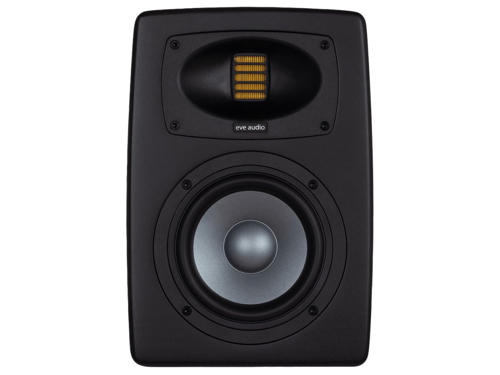 - Przednie, wielokolorowe logo „eve audio” zapewnia natychmiastową wizualną informację zwrotną o stanie systemu, sygnalizuje clipping, wyświetla postęp aktualizacji oprogramowania układowego i inne stany operacyjne