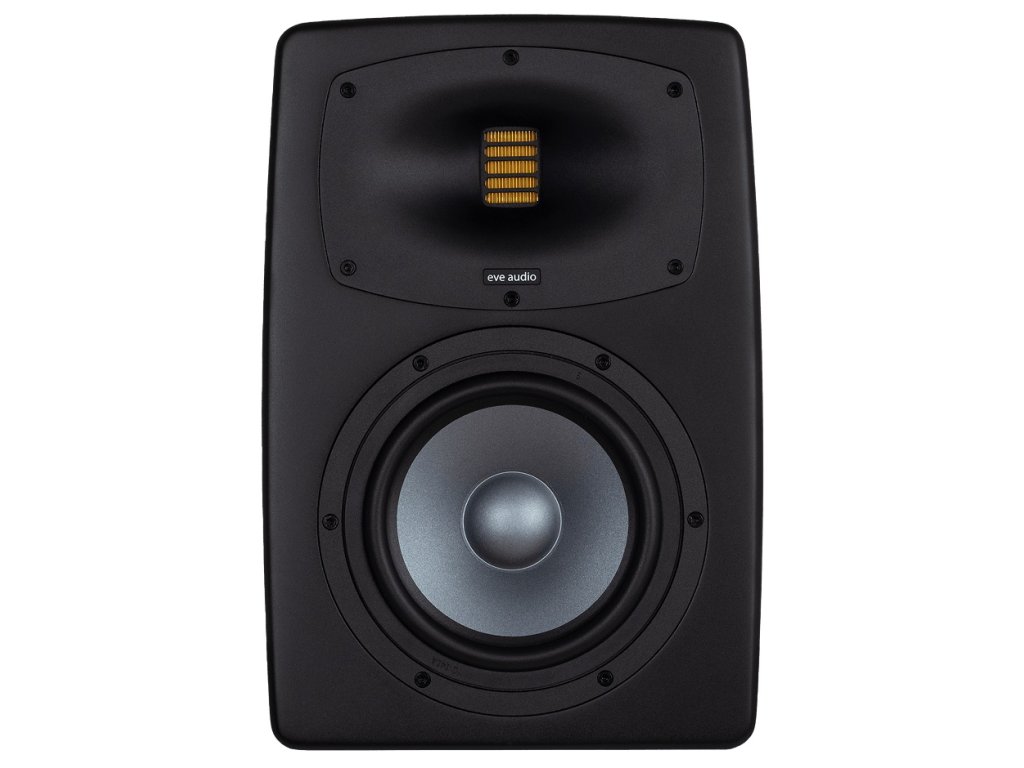 - Przednie, wielokolorowe logo „eve audio” zapewnia natychmiastową wizualną informację zwrotną o stanie systemu, sygnalizuje clipping, wyświetla postęp aktualizacji oprogramowania układowego i inne stany operacyjne