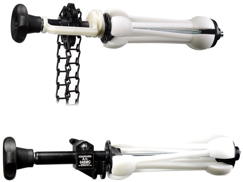 Zwijak łańcuchowy Expan z metalowym łańcuchem i obciążnikiem do teł fotograficznych, o średnicy 46-78 mm. Umożliwia łatwe podnoszenie i opuszczanie rolek papieru fotograficznego. System wykorzystuje 2 nasadki z techlopolymeru do mocowania jednej rolki papieru fotograficznego. Dokręcenie każdej strony rozciąga nasadki z 1,8" na 3", zapewniając mocne zamocowanie rolki od wewnątrz. Jedna strona jest wyposażona w duże koło zębate, na którym zamocowany jest metalowy łańcuch, umożliwiający wygodne podnoszenie i opuszczanie papieru. Druga strona ma regulowany poziom naciągu (hamulec). Mimo, że waży zaledwie 2 kg, może udźwignąć do 10 kg.
