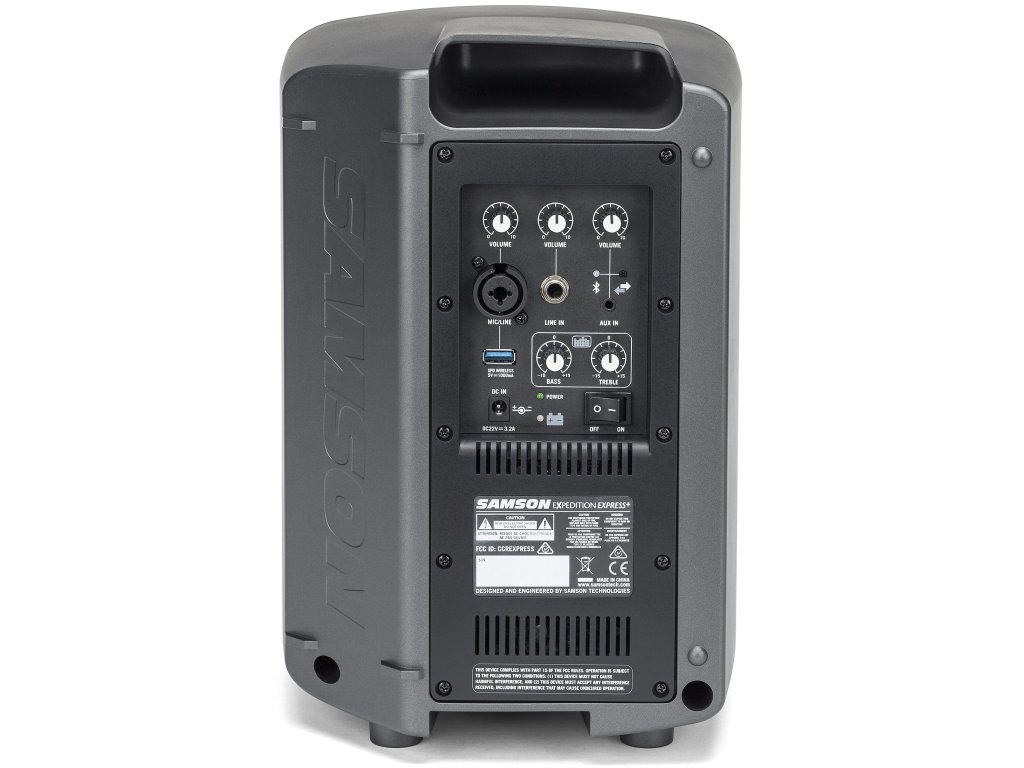 Wbudowany 3-kanałowy mikser oferuje jedno wejście z kombinowanym złączem XLR/Jack do podłączenia symetrycznego sygnału mikrofonowego lub sygnału o poziomie liniowym, a także wejście liniowe ze złączem Jack i wejście ze złączem Jack 3.5 mm do podłączenia zewnętrznego urządzenia MP3, telefonu komórkowego, tabletu itp. Każdy kanał jest wyposażony we własny regulator głośności. Możliwości boxu Express+ można dodatkowo rozszerzyć, podłączając zestaw bezprzewodowy z serii Samson XPD. Samson Express+ ma wbudowany port USB do podłączenia zestawu XPD, który można zakupić oddzielnie. W ten sposób można uzyskać absolutnie mobilne urządzenie z podłączonym zestawem bezprzewodowym bez konieczności zapewnienia zasilania odbiornikowi z zestawu XPD.