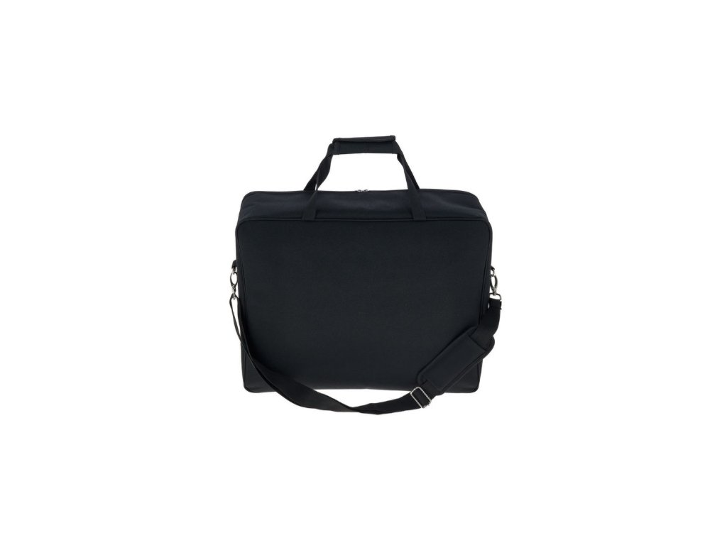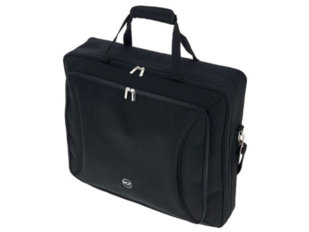 Wyściełana torba na konsolety mikserskie RCF F 16XR z uchwytem i paskiem na ramię. Szeroka przednia kieszeń z dzieloną sekcją na tablety i inne akcesoria.