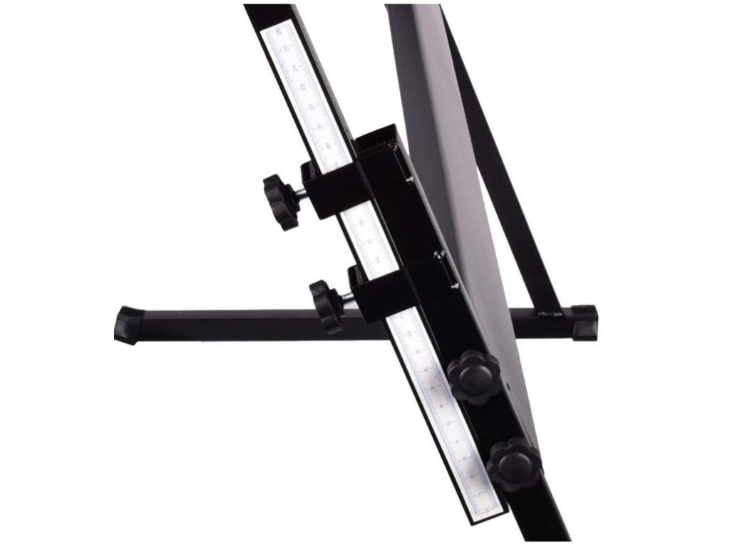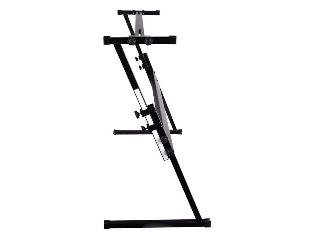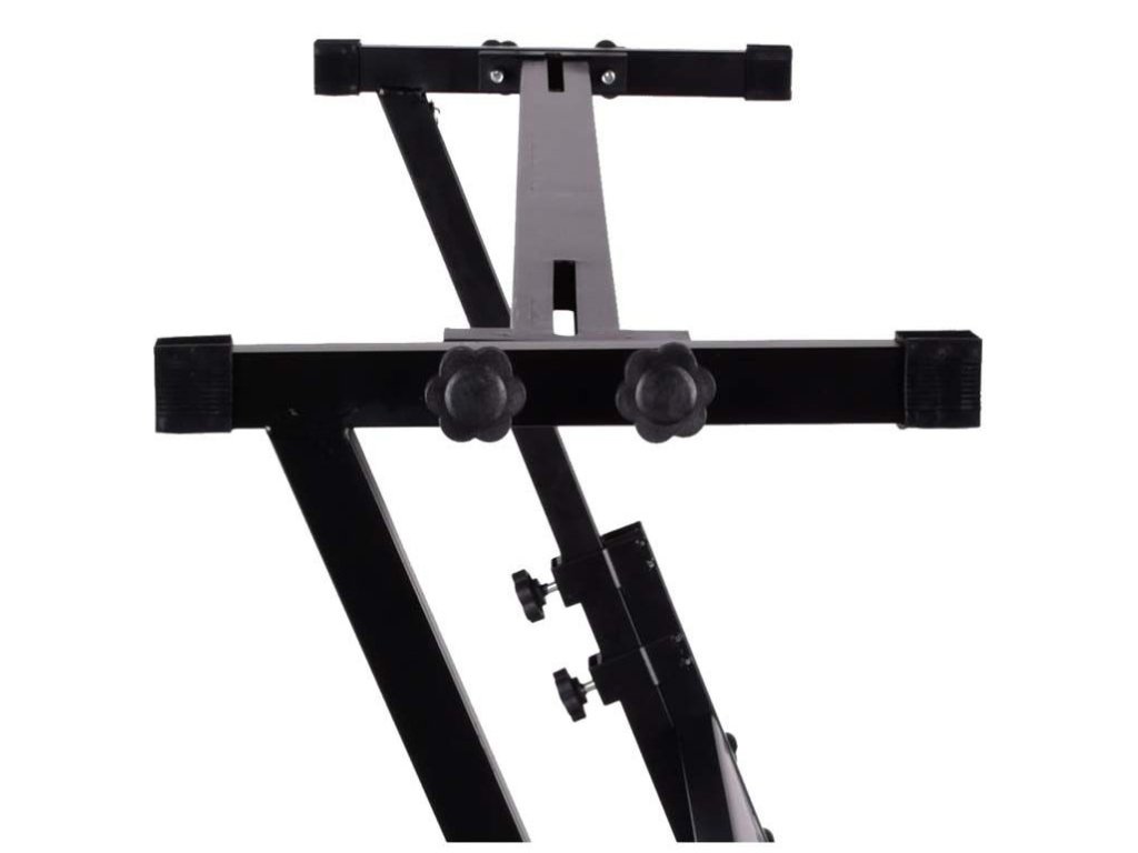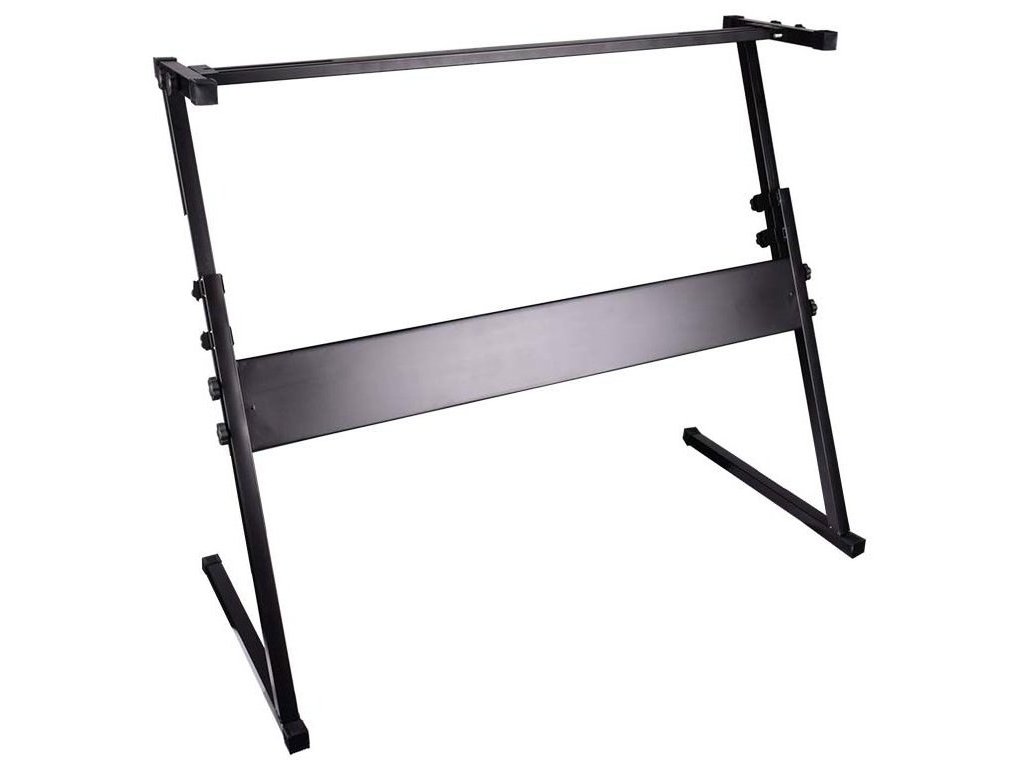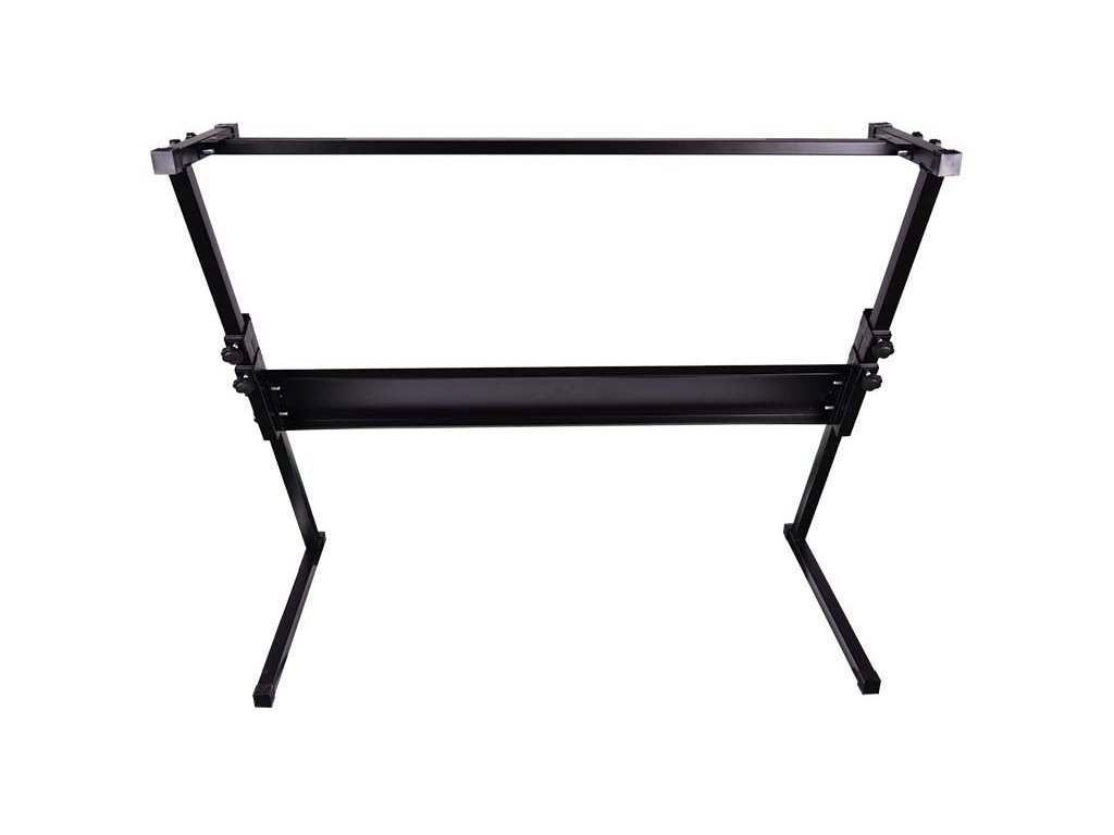 NN F to solidny i bardzo wygodny statyw klawiszowy do keyboardu, pianina cyfrowego lub syntezatora dźwięku, który po dodaniu blatu może pełnić funkcję stołu DJ-skiego. Statyw w całości wykonany jest z profili stalowych malowanych proszkowo na kolor czarny, dzięki czemu jest odporny na zarysowania i korozję. Posiada regulację wysokości od 49 do prawie 80 cm. Dzięki temu możesz wygodnie grać zarówno na siedząco, jak i na stojąco. Solidne uchwyty na instrumenty ze wzmacniającą poprzeczką mają na końcach antypoślizgowe nakładki, które utrzymują klawisze stabilnie na swoim miejscu. Głębokie podstawy na gumowych nóżkach zapewniają wysoką stabilność całej konstrukcji i zapobiegają jej przesuwaniu się po podłodze. Rozważając, jaki statyw na klawisze wybrać, warto zwrócić uwagę na ten model. To idealne rozwiązanie zarówno dla amatorów, jak i profesjonalnych muzyków. Doskonale sprawdza się w domu, w salach prób, ale także na koncertach, weselach i różnego rodzaju imprezach okolicznościowych.