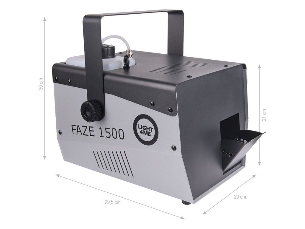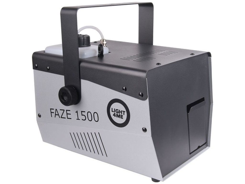 Light4Me Faze 1500 to wytwornica mgły typu fazer. Wytwornica może pracować nieprzerwanie przez długi czas, a objętość produkowanej mgły i prędkość wentylatorów, a więc i siła wyjściowa, są regulowane i można je dostosować do specyfiki wydarzenia. Bardzo użyteczną funkcją jest również timer. Dzięki niemu można ustawić czas ciągłej emisji od 1 do 200 sekund, a także interwał czasowy między kolejnymi emisjami dymu. Dzięki temu Faze 1500 może tworzyć lekką mgłę widoczną na scenach telewizyjnych z widzami, scenach filmowych i fotograficznych, a także gęstą mgłę na imprezach techno i DJ.