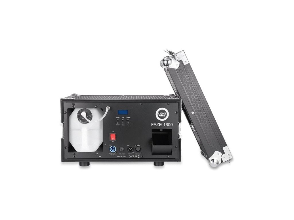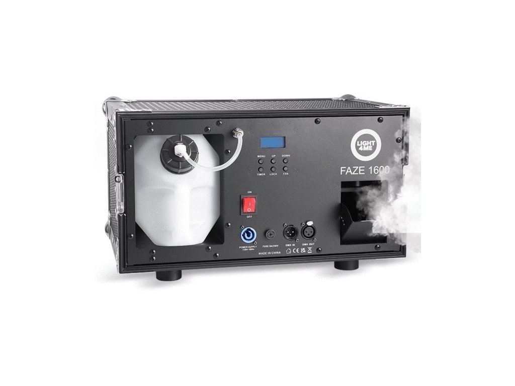 Light4Me Faze 1600 to wytwornica mgły typu fazer. Wytwornica może pracować w sposób ciągły przez długi czas, a objętość produkowanej mgły i prędkość wentylatorów, a tym samym moc wyjściowa, są regulowane i można je dostosować do specyfiki wydarzenia. Bardzo użyteczną funkcją jest również timer. Dzięki niemu można ustawić czas ciągłego wytwarzania mgły od 1 do 200 sekund, a także odstęp czasu między kolejnymi emisjami mgły. Dzięki temu Faze 1600 może tworzyć lekką mgłę widoczną na scenach telewizyjnych z publicznością, scenach filmowych i fotograficznych, a także gęstą mgłę na imprezach techno i DJ.