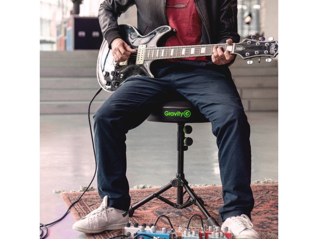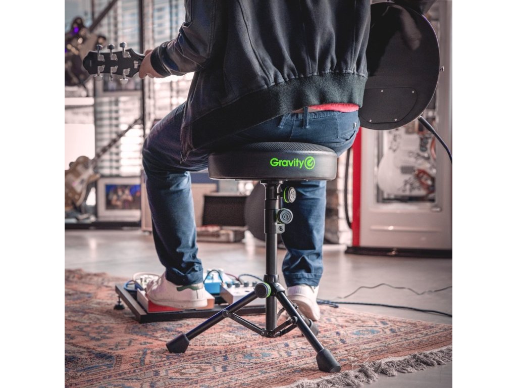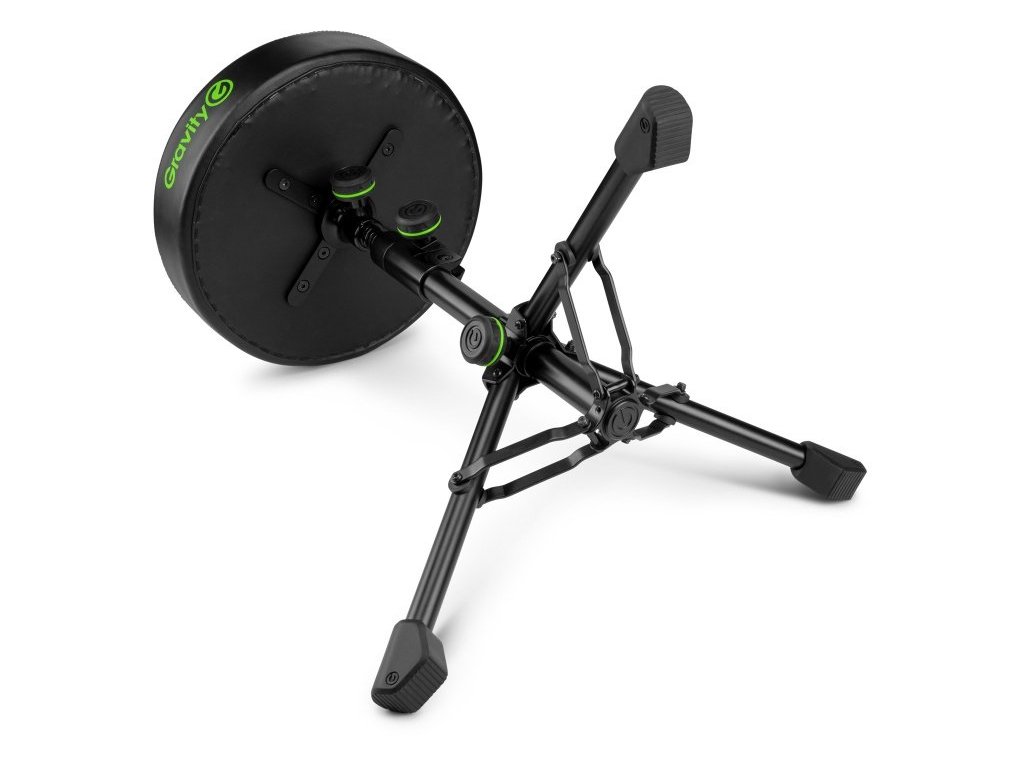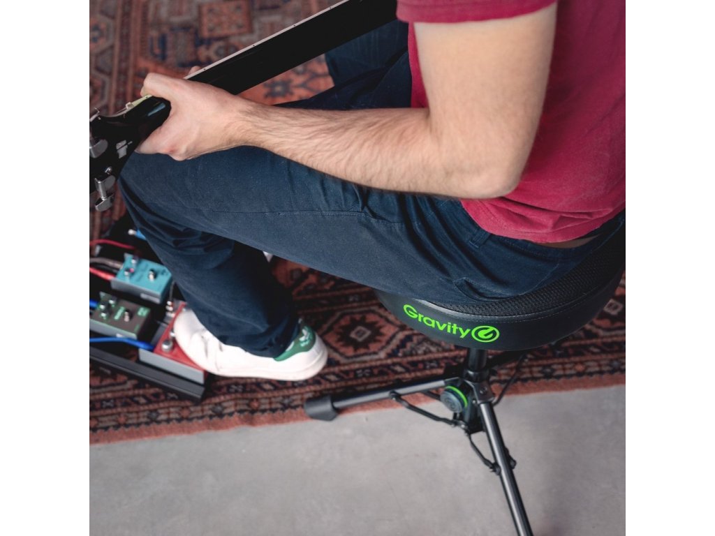 FD SEAT 1 firmy Gravity to okrągłe krzesło dla muzyków do uniwersalnego zastosowania: W studiu, na scenie, w sali prób lub podczas ćwiczeń w domu. Dla perkusistów, gitarzystów, basistów, pianistów, graczy na instrumentach smyczkowych lub dętych. Wyróżnia się specjalnymi cechami typowymi dla marki Gravity. Z jednej strony funkcjonalność siedziska: w przeciwieństwie do większości obecnych modeli innych producentów, nie jest wykonane tylko ze skóry/sztucznej skóry lub tkaniny, ale z mieszanki materiałów. Dzięki temu powierzchnia siedziska jest oddychająca we właściwych miejscach, co znacznie zwiększa komfort. Ponadto ta mieszanka nadaje siedzisku FD SEAT 1 niepowtarzalny i atrakcyjny wygląd, który odróżnia go od innych.