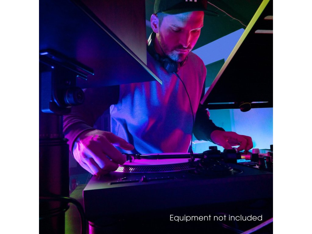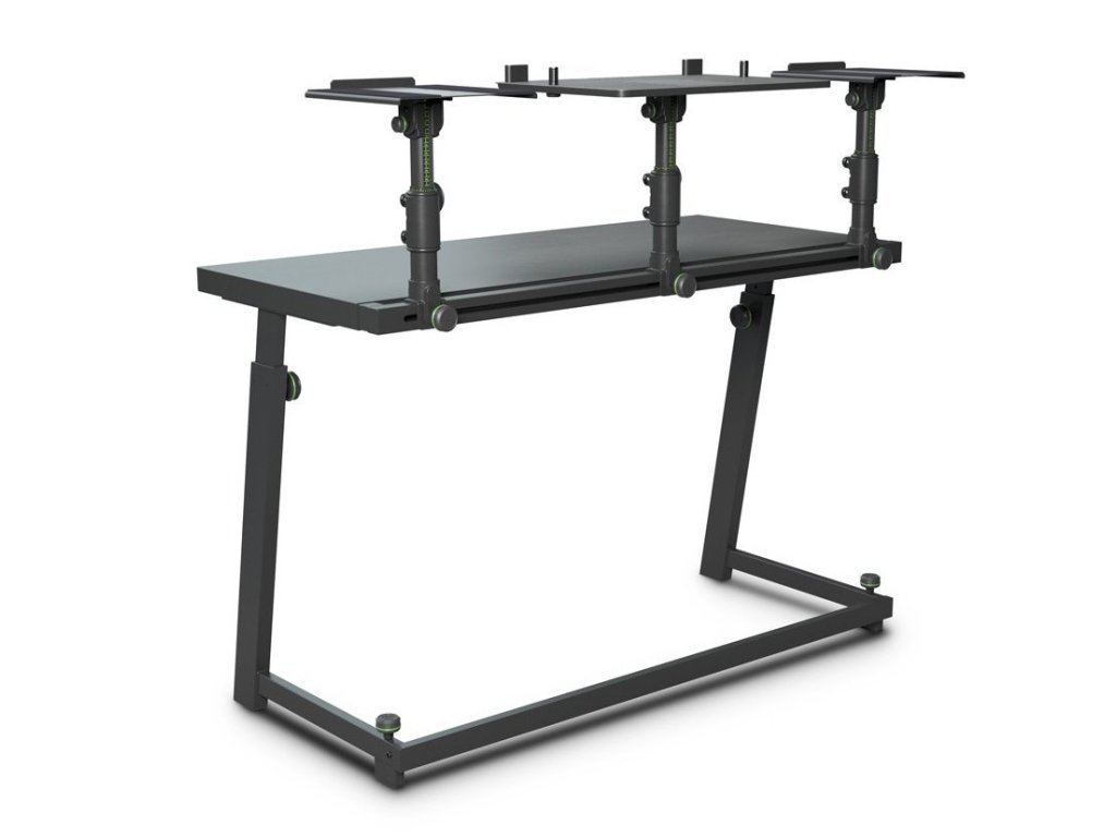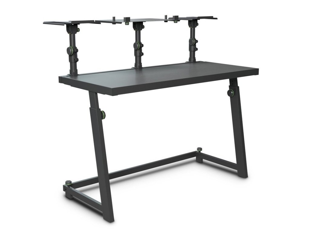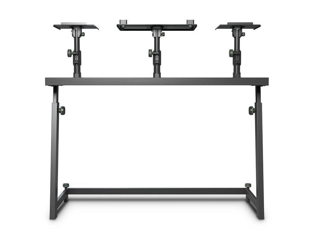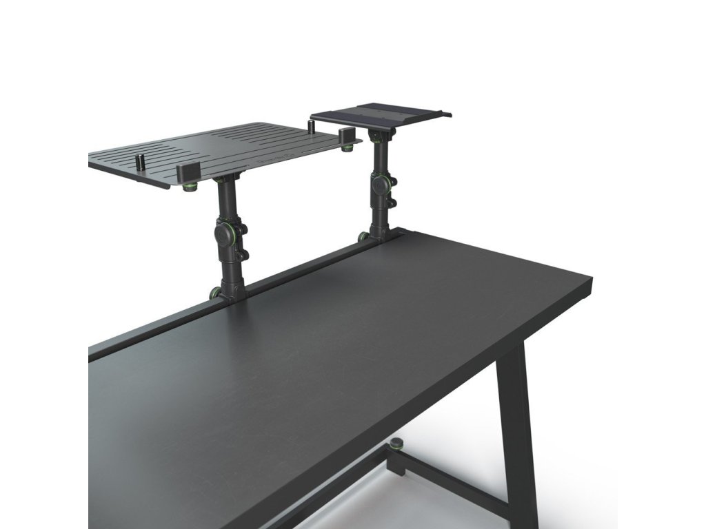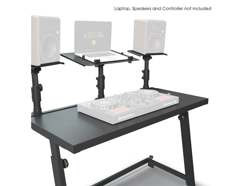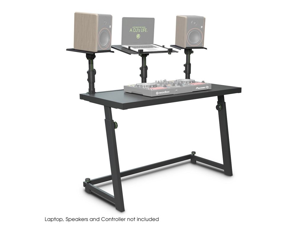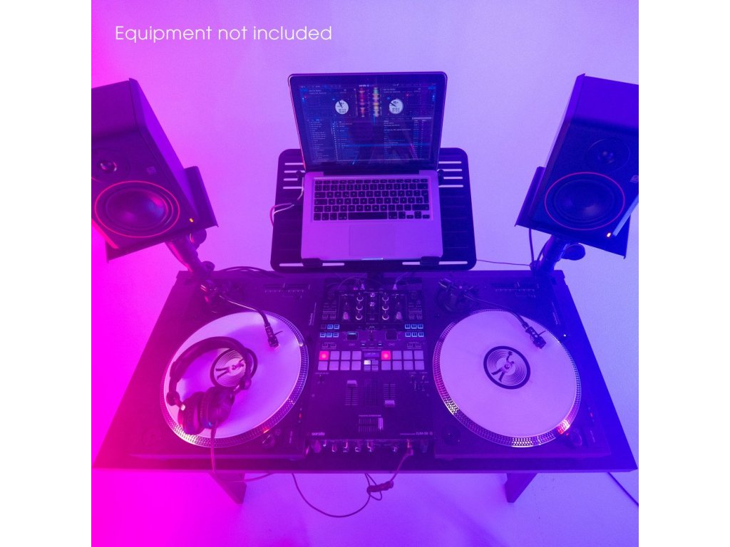 Kreatywność nie zna granic, ale przestrzeń robocza już tak. Miejscem, w którym możesz się bez ograniczeń rozłożyć, jest stół DJ Gravity® FDJT 01. Na nim Twój sprzęt będzie zawsze gotowy do użycia. Twoje monitory można umieścić na stojakach z regulacją wysokości, obracanych o 360° i pochylanych o 15°. Precyzyjna skala na rurach znacznie ułatwi ustawienie nachylenia głośników. Twój laptop znajduje się na środku biurka i jest mocno trzymany na miejscu przez zintegrowane kołki, dzięki czemu nawet przy ekstremalnym nachyleniu jest zawsze zamocowany. Uchwyty głośników i laptopów można precyzyjnie regulować wzdłuż tylnej szyny biurka DJ Gravity® FDJT 01, przesuwając je w lewo lub w prawo.