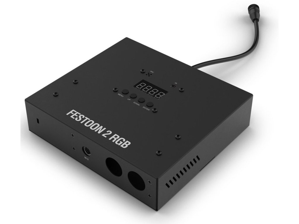 Festoon 2 RGB to dekoracyjny system oświetlenia łańcuchowego, który imituje wrażenie klasycznego oświetlenia żarówkami. Przewód i poszczególne żarówki posiadają stopień ochrony IP54 do tymczasowego użytku na zewnątrz, dzięki czemu efekt może być korzystny zarówno dla wydarzeń wewnątrz, jak i na zewnątrz. Festoon 2 RGB jest w pełni mapowalny pikselowo, co zapewnia maksymalną kreatywność podczas pokazów i programowania, a wbudowane automatyczne programy tworzą złożony wygląd w ciągu kilku sekund.