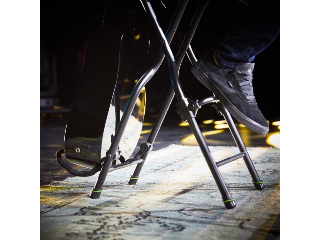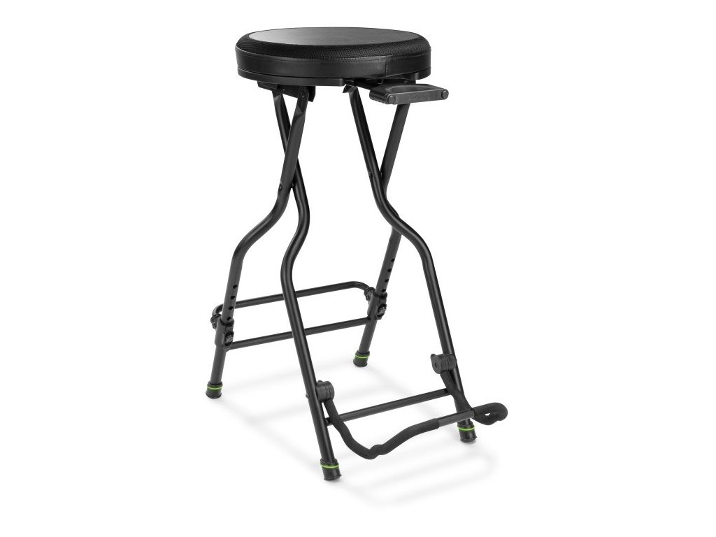 Kluczowym słowem jest tutaj kompaktowość, ponieważ kto nie zna sytuacji, gdy w drodze na koncert zapomni w pośpiechu statywu na gitarę, stołek na miejscu koncertu nie jest wygodny, a gitara zsuwa się z nogi, ponieważ jest zbyt wysoka. Na takie przypadki dostępne jest teraz siedzisko dla muzyków Gravity FG SEAT 1. Inteligentny stołek ze zintegrowanym statywem i regulowanym podnóżkiem zapewnia wrażenie jak w barze na każdej scenie i w domu.