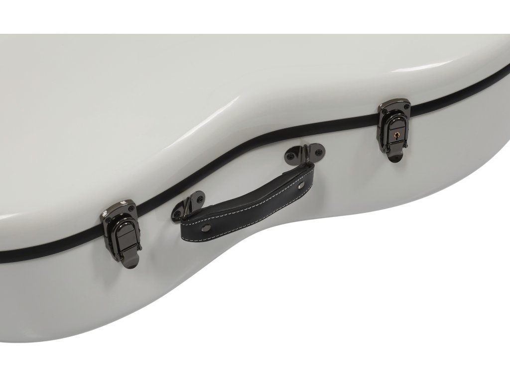 Futerał jest precyzyjnie ukształtowany, aby idealnie pasował do wiolonczeli standardowego rozmiaru 4/4. Dwa zamki zabezpieczające, z których jeden jest zamykany na klucz, zapewniają jego solidne zamknięcie. Wygodne przenoszenie umożliwia ergonomiczny uchwyt, podczas gdy nity z tyłu pozwalają na łatwe mocowanie opcjonalnych pasków na plecy.