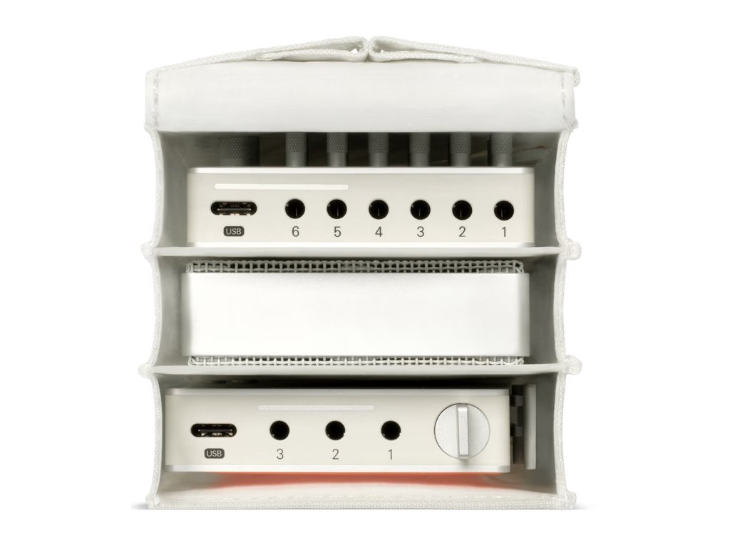 Torba Teenage Engineering Field Accordion Bag została zaprojektowana z myślą o bezpiecznym przechowywaniu i przejrzystym organizowaniu kluczowych urządzeń z serii Field, takich jak syntezator TX–6, mikrofon CM–15 czy rejestrator TP–7, wraz z kablami i innymi drobnymi akcesoriami. Zapewnia doskonałą ochronę dzięki wewnętrznemu podziałowi z płytami PE, które chronią zawartość przed uderzeniami, a jednocześnie zapewniają szybki dostęp do potrzebnych komponentów.