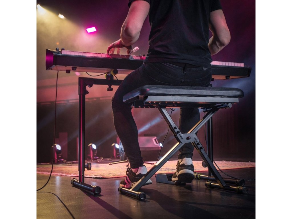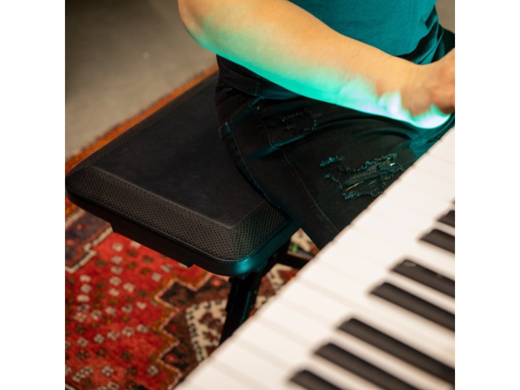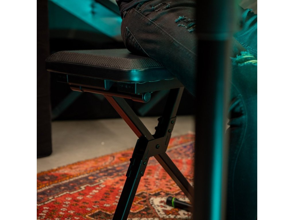 Ławka do instrumentów klawiszowych FK SEAT 1 firmy Gravity, którą można wykorzystać do różnych celów na scenie, w sali prób lub podczas ćwiczeń i komponowania w domu, jest przeznaczona dla klawiszowców, gitarzystów, basistów i muzyków grających na instrumentach smyczkowych i dętych.