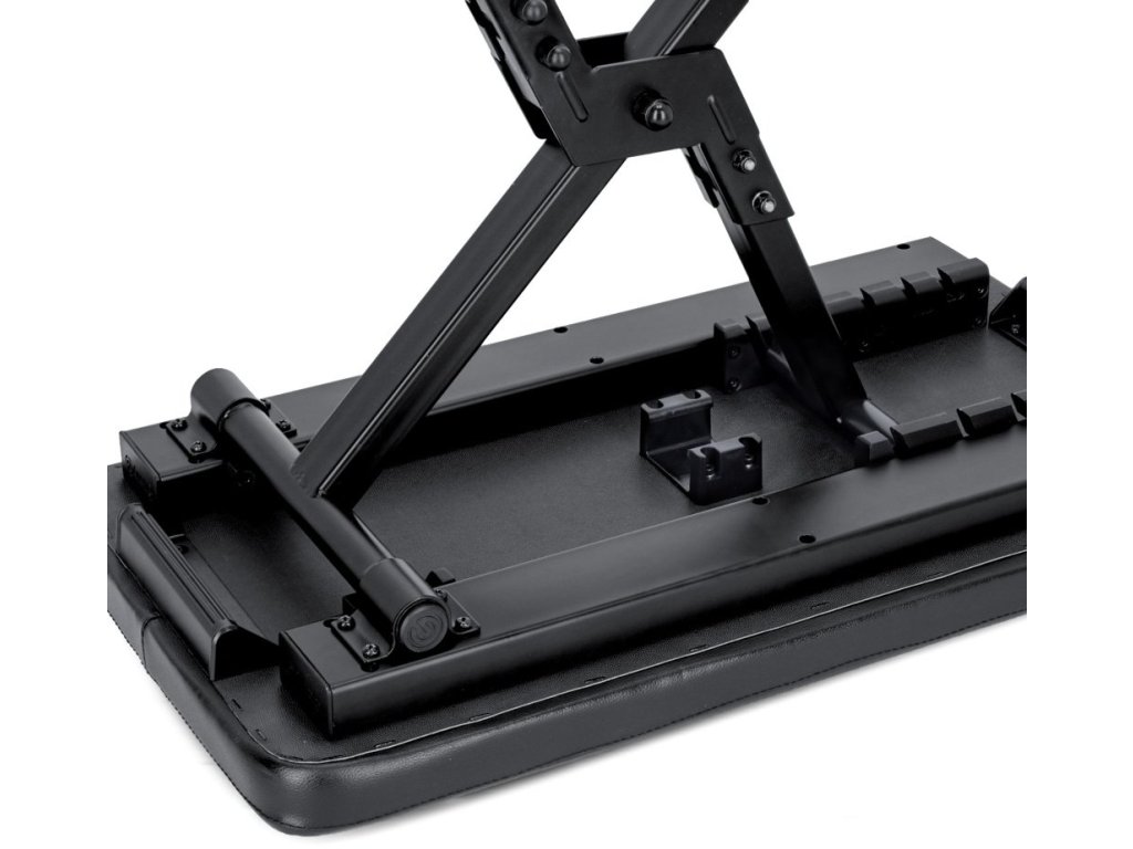 Kolejnym bardzo przydatnym elementem jest zintegrowana poziomica, a konstrukcja podstawy rurowej jest wyposażona w KS VARI-Foot 1. Prosty mechanizm śrubowy umożliwia mocne i bezpieczne zamocowanie ławki na miejscu, nawet na nierównej powierzchni. Mechanizm zawiasowy FK Seat 1 umożliwia szybkie ustawienie, demontaż i złożenie ławki na płasko w celu transportu. Podczas załadunku zmieści się praktycznie w każdej przestrzeni. Krótko mówiąc, ławka FK SEAT 1 jest idealną ławką do keyboardu do szerokiego zakresu zastosowań!