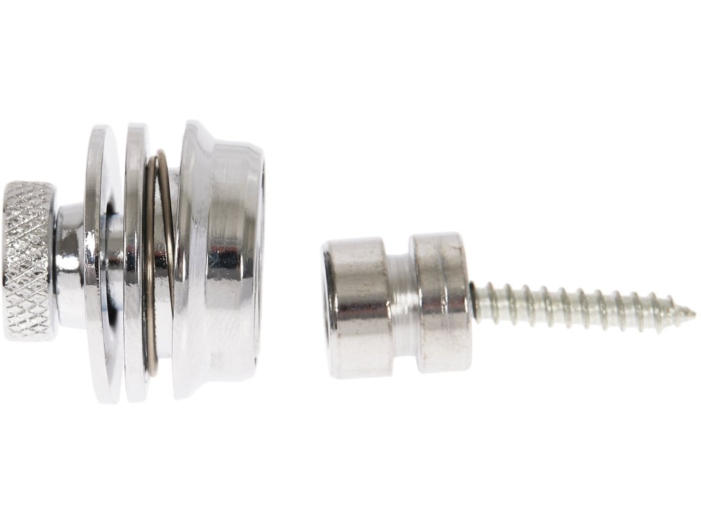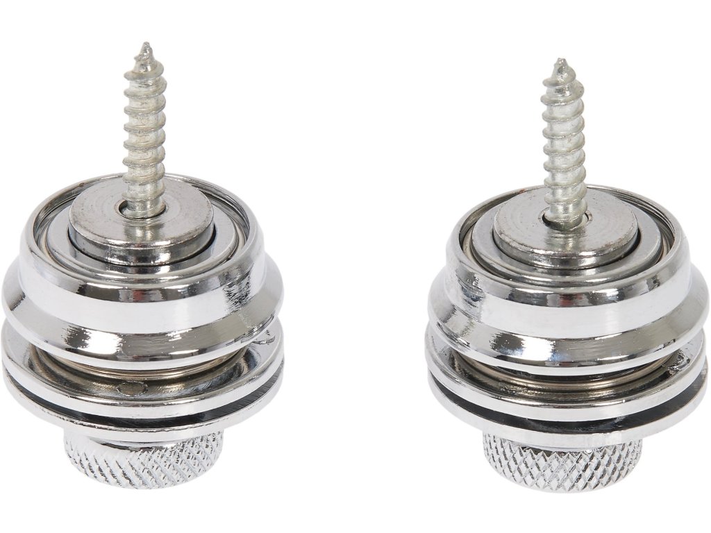 Zestaw zamków zabezpieczających firmy Razzor w chromowanym wykończeniu, które zapobiegają wysunięciu się instrumentu z paska i jego późniejszemu uszkodzeniu. Pasuje do wszystkich pasków gitarowych i basowych.