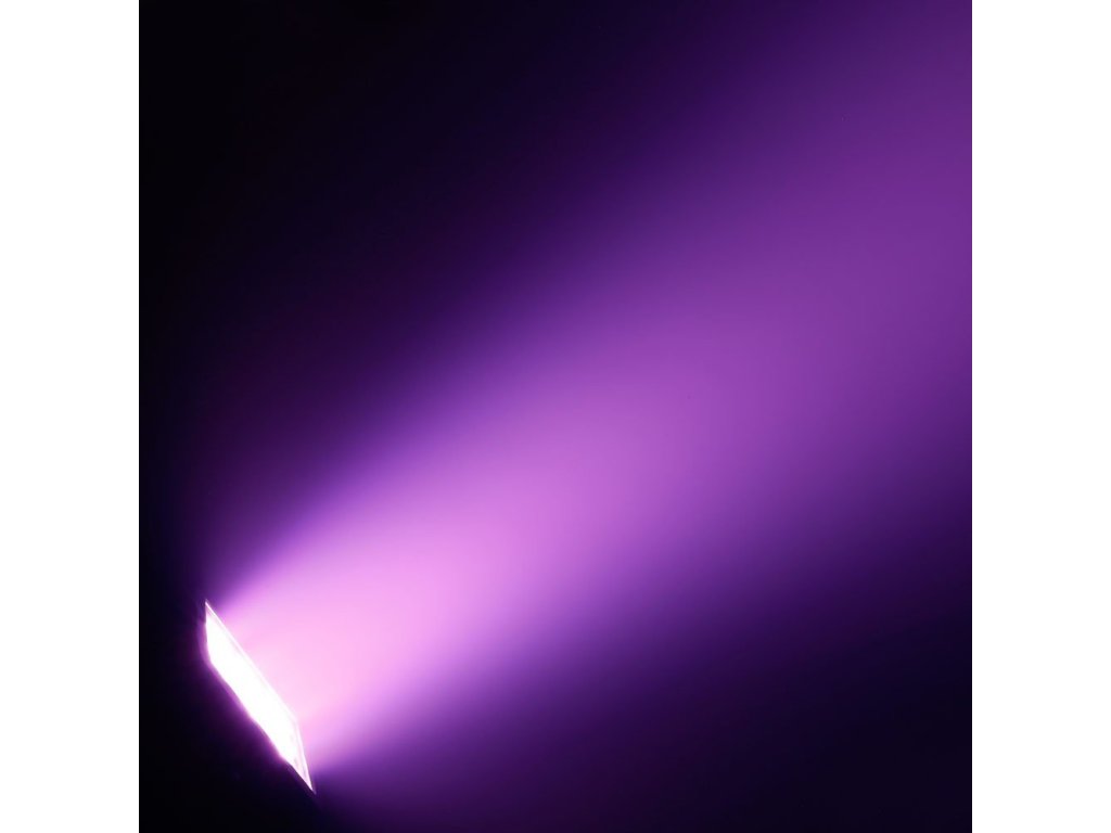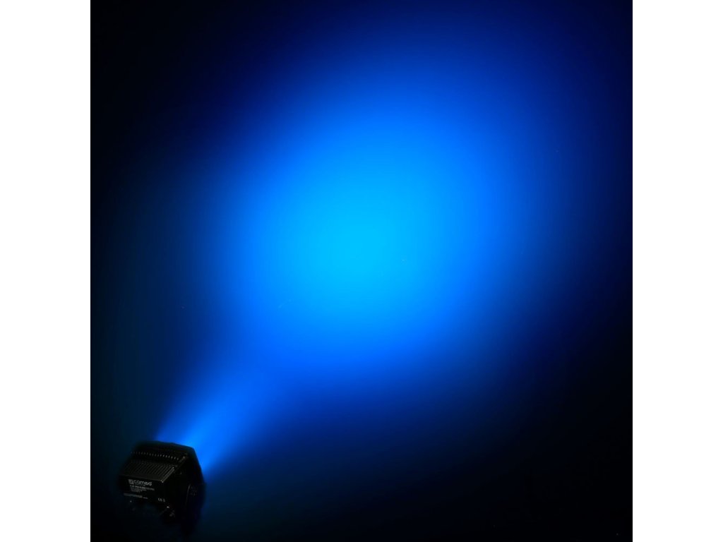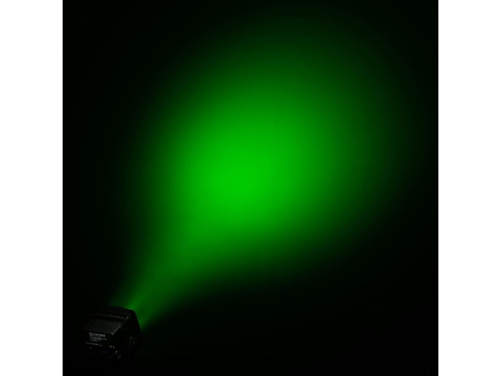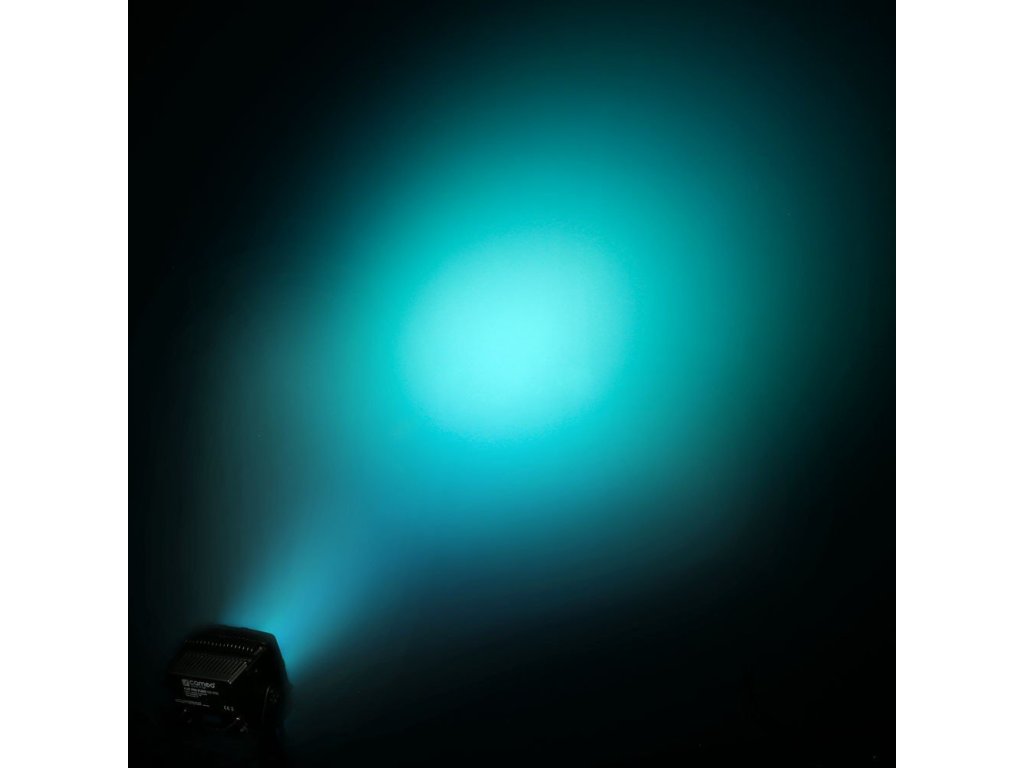 - Funkcje DMX: zanikanie kolorów, skok kolorów, makro kolorów, ściemniacz główny, RGBWA + UV, stroboskop