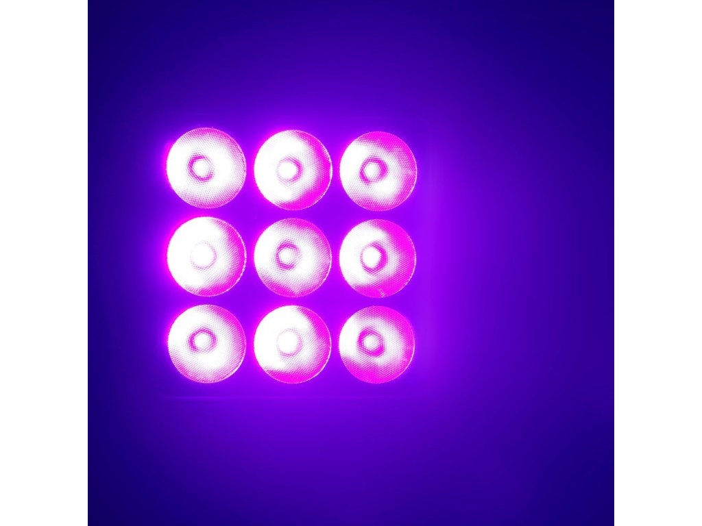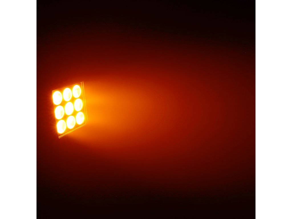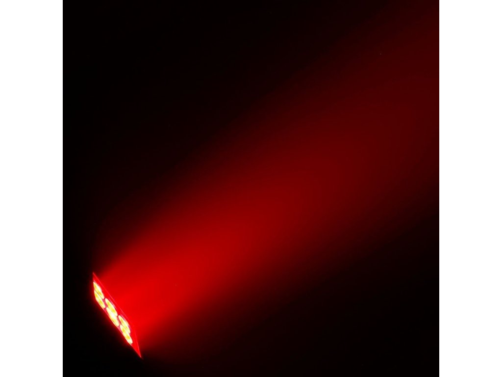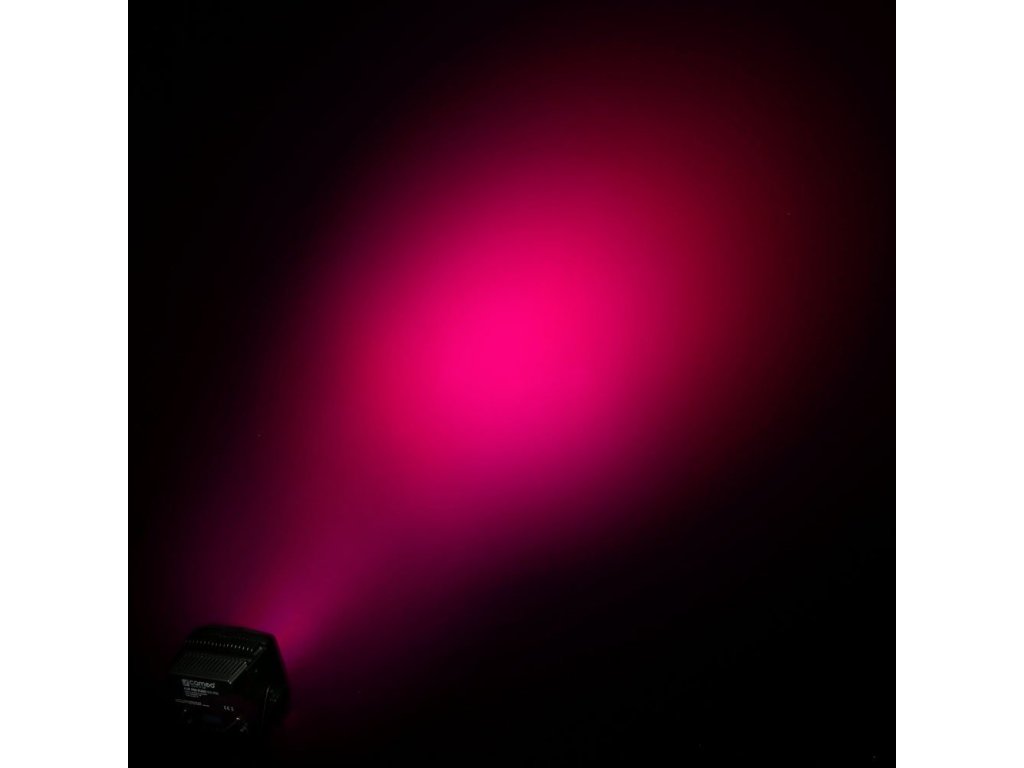 - Funkcje DMX: zanikanie kolorów, skok kolorów, makro kolorów, ściemniacz główny, RGBWA + UV, stroboskop