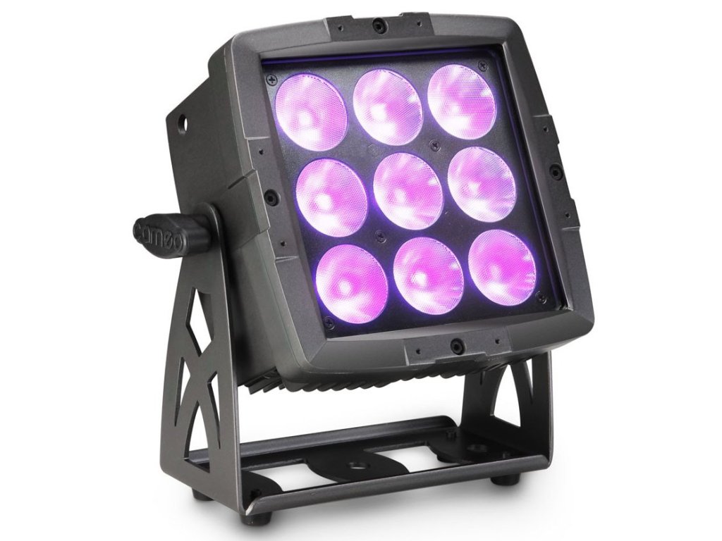 Seria Cameo FLAT PRO FLOOD 600 IP65 to kompaktowe oświetlenie zewnętrzne wyposażone w dziewięć diod LED 12 W 6 w 1, które generuje bogate kolory RGBWA, miękkie pastelowe odcienie i intensywne efekty UV. Kąt wiązki 40° i częstotliwość odświeżania 3000 Hz zapewniają wydajność bez migotania.