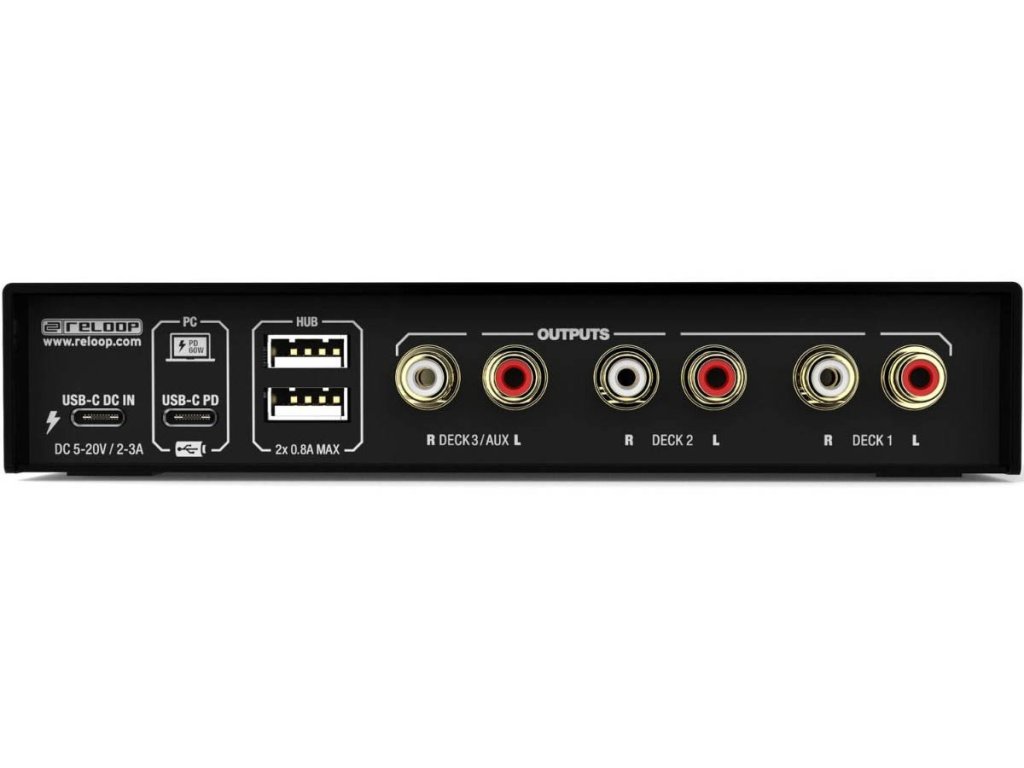 Trzy wejścia stereo zapewniają DJ-om maksymalną elastyczność. Gramofony i CDJ-e mogą być używane w dowolnej kombinacji. Ustawienia są regulowane za pomocą przełączników DIP, co praktycznie eliminuje możliwość przypadkowego przełączenia w klubie. Interfejs zawiera trzy wyjścia stereo, w tym wyjście AUX, które można skierować do wewnętrznego samplera Serato DJ Pro. Pozłacane złącza RCA (odporne na korozję) zapewniają wysoką jakość transmisji dźwięku.
