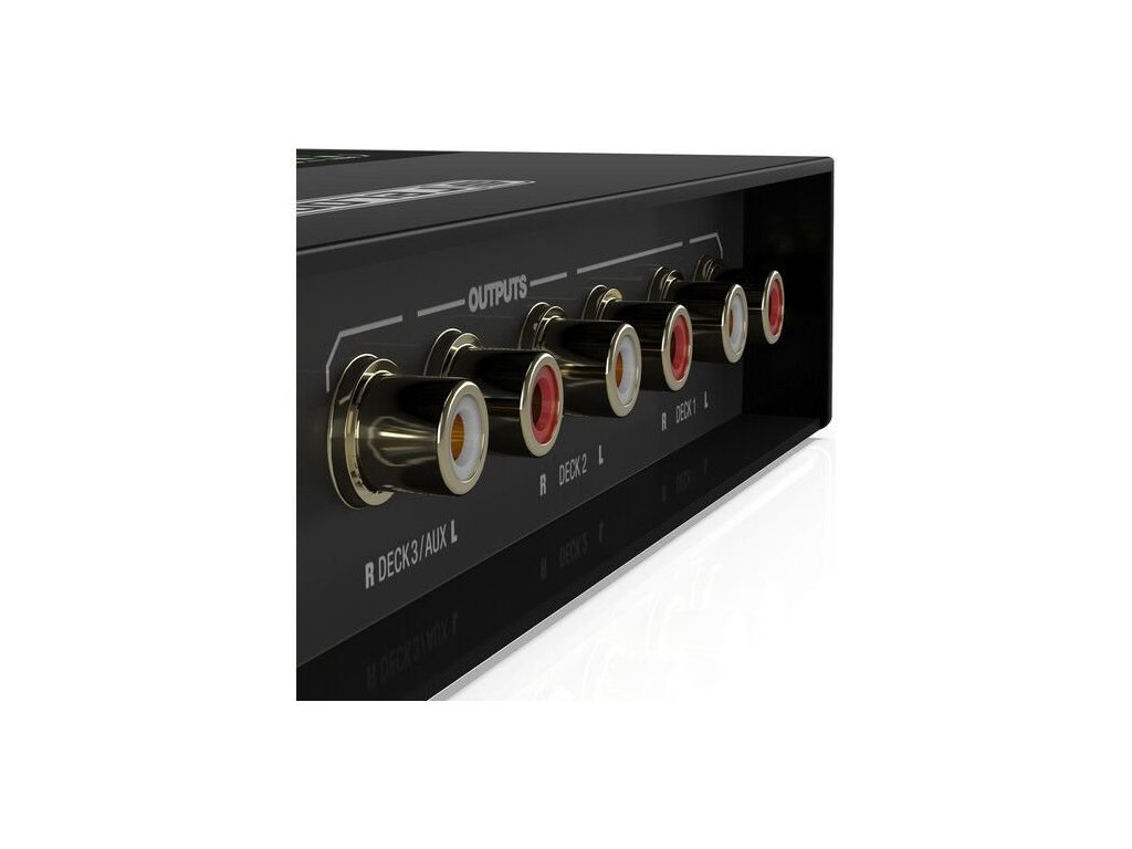 - 3x wejścia dla gramofonów, odtwarzaczy CD lub AUX-In dla sygnału na żywo, przełączane w dowolnej kombinacji za pomocą dedykowanych przełączników DIP
