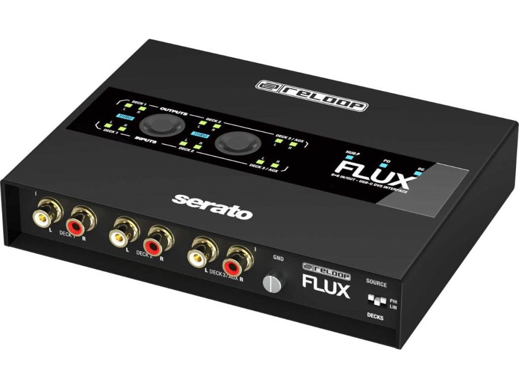 Reloop Flux to interfejs USB-C nowej generacji do użytku z Serato DJ Pro z gramofonami, CDJ-ami lub innymi odtwarzaczami. Interfejs charakteryzuje się doskonałą jakością dźwięku, dobrze zaprojektowaną koncepcją sterowania i konstrukcją przygotowaną do trudnych warunków klubowych. Może przekształcić dowolny konwencjonalny mikser w profesjonalny DVS.