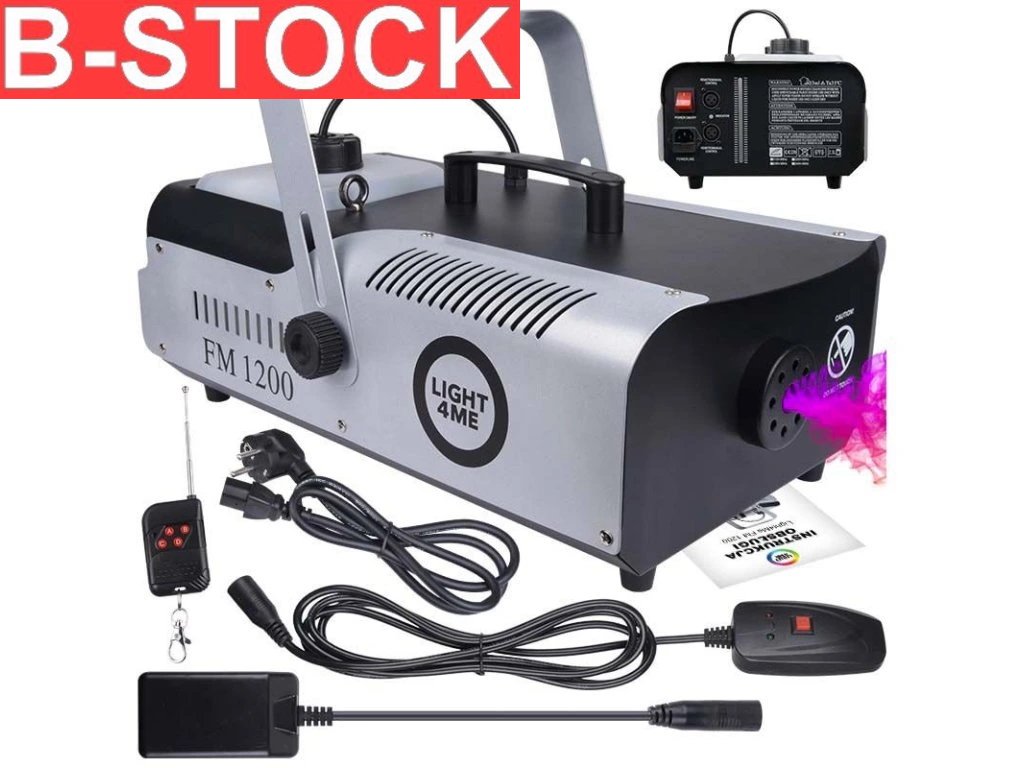 Light4Me FM 1200 to kompaktowy, wydajny i w pełni profesjonalny generator dymu (wytwornica mgły) z bardzo mocną grzałką, która zapewnia szybki start urządzenia. Dla większego komfortu pracy FM 1200 jest wyposażony w dwa piloty zdalnego sterowania - przewodowy na 3-metrowym kablu i bezprzewodowy pilot zdalnego sterowania. Dzięki temu urządzenie można umieścić w dowolnym i optymalnym miejscu w pomieszczeniu i sterować nim zdalnie. Urządzenie jest bardzo łatwe w użyciu. Wystarczy włączyć je przyciskiem z tyłu obudowy, aby po chwili cieszyć się gęstą mgłą wydobywającą się z przedniej dyszy.
