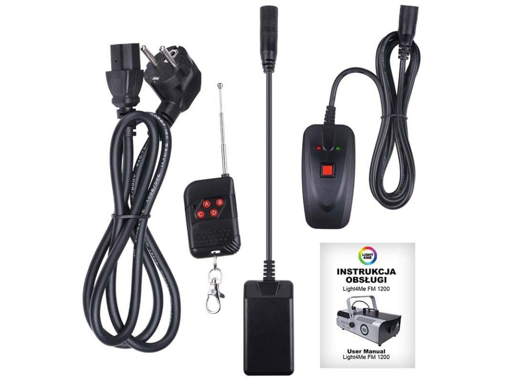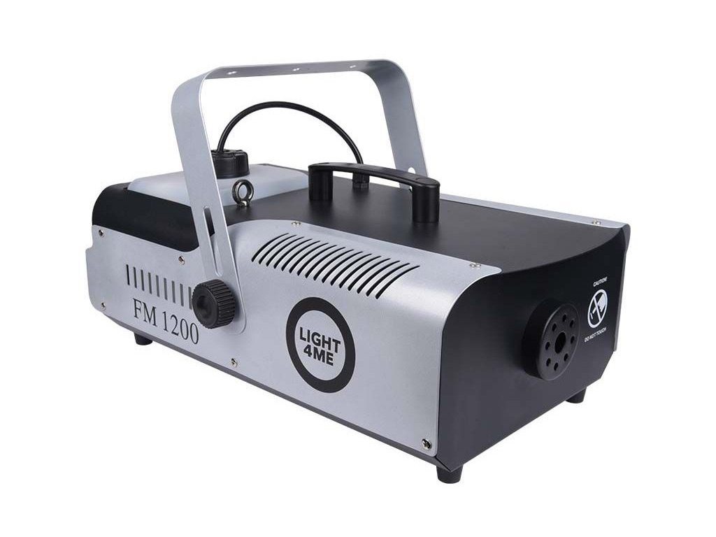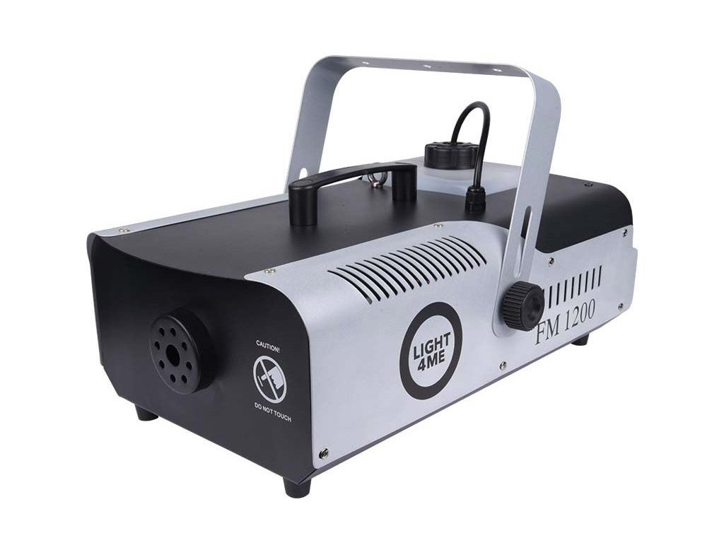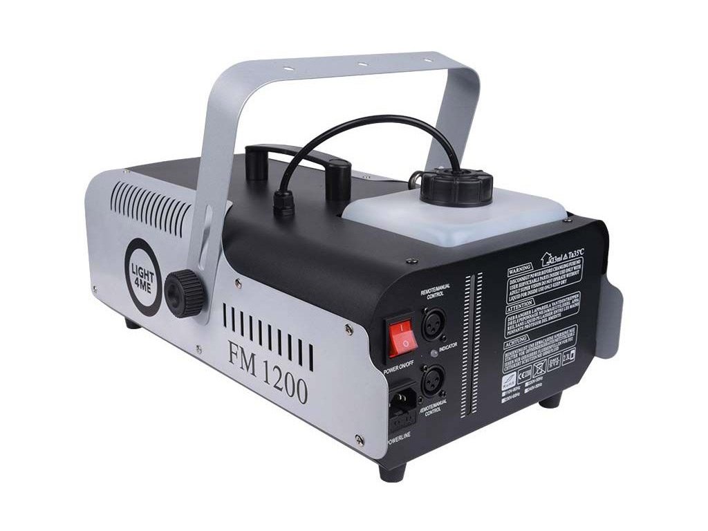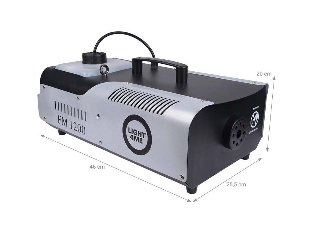 Light4Me FM 1200 to kompaktowy, wydajny i w pełni profesjonalny generator dymu (wytwornica mgły) z bardzo mocną grzałką, która zapewnia szybki start urządzenia. Dla większego komfortu pracy FM 1200 jest wyposażony w dwa piloty zdalnego sterowania - przewodowy na 3-metrowym kablu i bezprzewodowy pilot zdalnego sterowania. Dzięki temu urządzenie można umieścić w dowolnym i optymalnym miejscu w pomieszczeniu i sterować nim zdalnie. Urządzenie jest bardzo łatwe w użyciu. Wystarczy włączyć je przyciskiem z tyłu obudowy, aby po chwili cieszyć się gęstą mgłą wydobywającą się z przedniej dyszy.