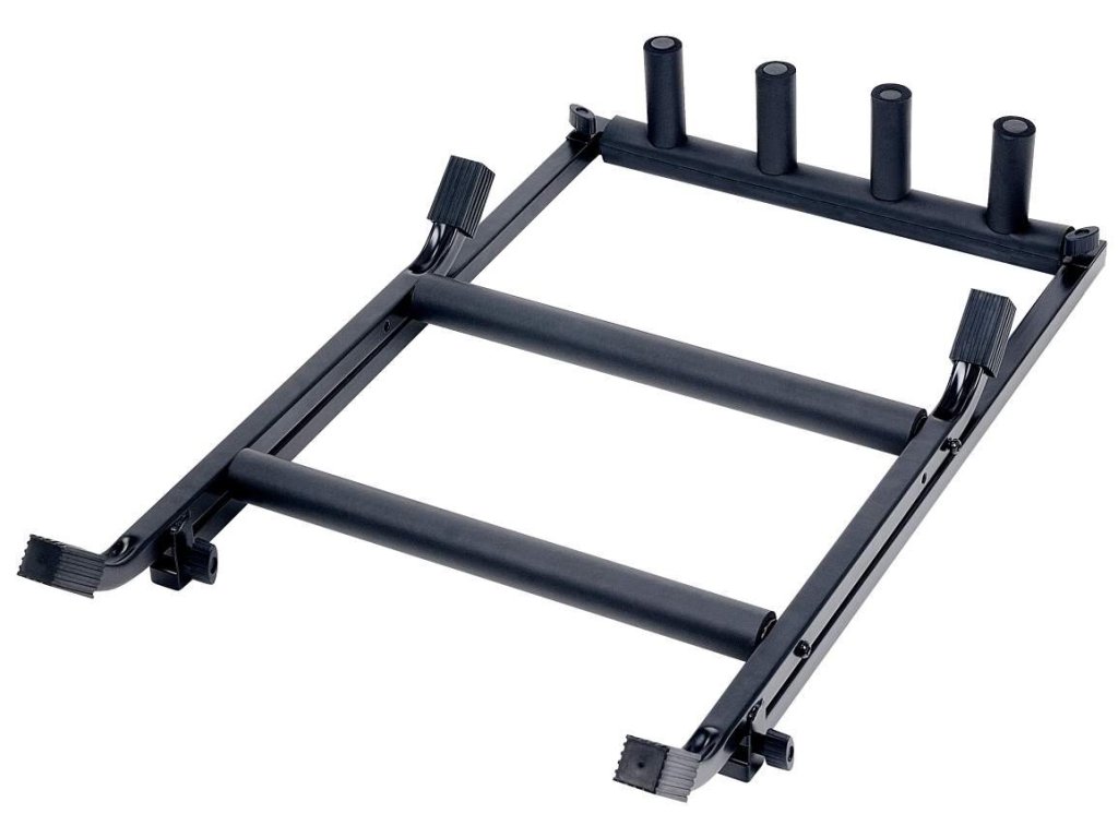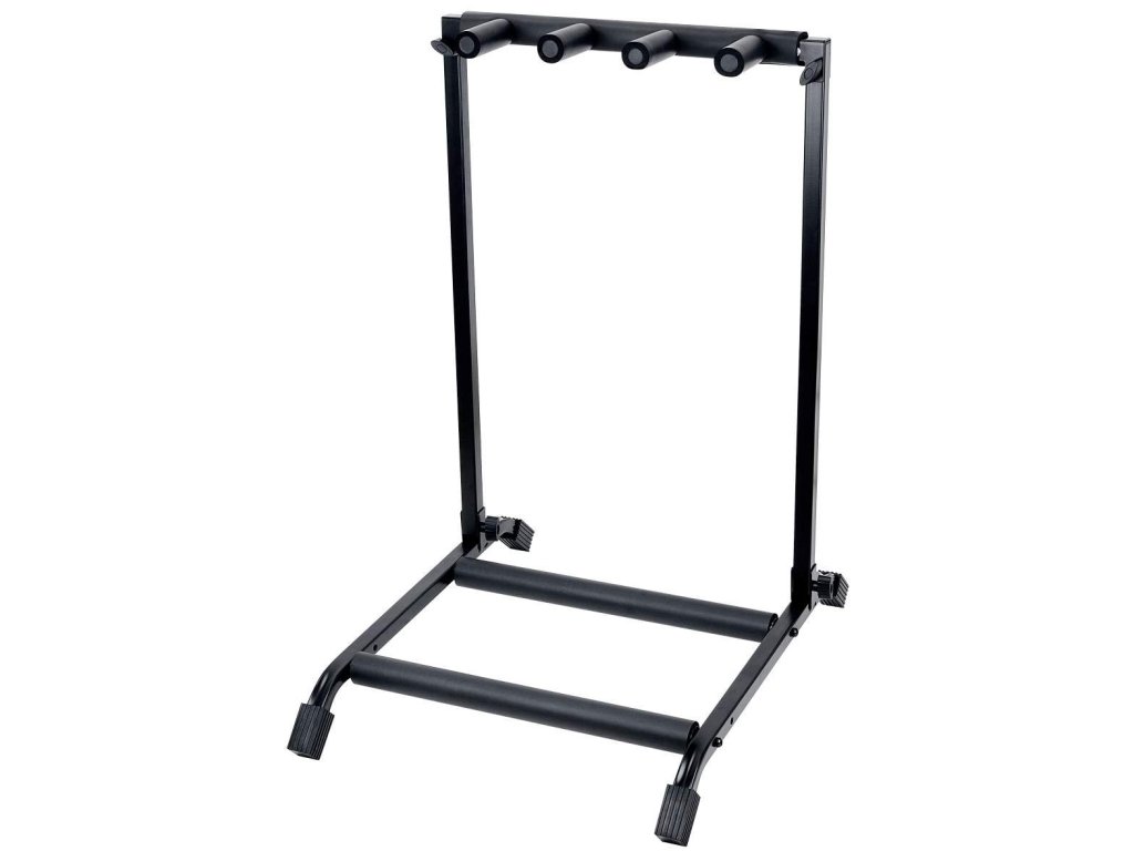 Stojak o solidnej metalowej konstrukcji na trzy gitary elektryczne, czyli około dwóch gitar akustycznych/basowych. Części stykające się z instrumentami są pokryte gumowaną warstwą, aby zapobiec uszkodzeniu lakieru gitar. Stabilność stojaka gwarantuje podstawa na czterech nogach. Po złożeniu zajmuje minimalną ilość miejsca, dzięki czemu jest idealnym wyborem do użytku domowego i występów na żywo związanych z podróżowaniem.