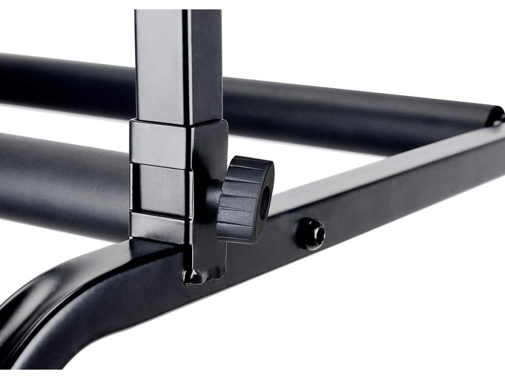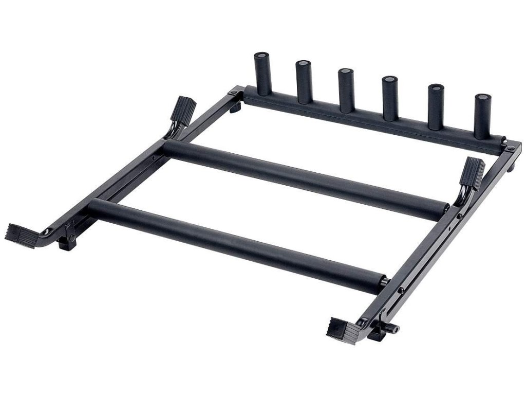 Stojak o solidnej metalowej konstrukcji na pięć gitar elektrycznych (czyli około trzech akustycznych)/basowych. Części stykające się z instrumentami są pokryte gumowaną warstwą, aby zapobiec uszkodzeniu lakieru gitar. Stabilność stojaka gwarantuje podstawa na czterech nogach. Po złożeniu zajmuje minimalną ilość miejsca, dzięki czemu jest idealnym wyborem do użytku domowego i występów na żywo związanych z podróżowaniem.