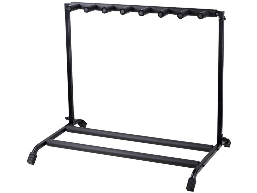 Stojak o solidnej metalowej konstrukcji na siedem gitar elektrycznych (lub około pięciu akustycznych)/basowych. Części stykające się z instrumentami są pokryte gumowaną warstwą, aby zapobiec uszkodzeniu lakieru gitar. Stabilność stojaka gwarantuje podstawa na czterech nogach. Po złożeniu zajmuje minimalną ilość miejsca, dzięki czemu jest idealnym wyborem do użytku domowego i występów na żywo związanych z podróżowaniem.