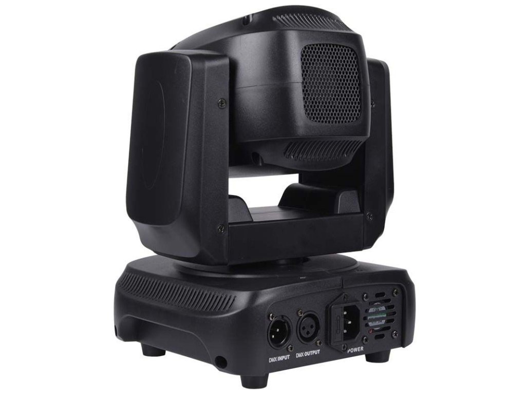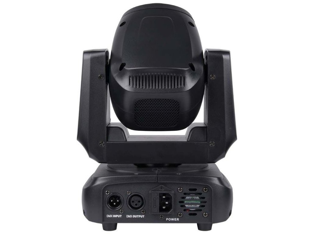 Ruchoma głowa Focus Beam 100 LED jest wyposażona w wydajną, białą diodę LED o mocy 100 watów. Na kole kolorów znajduje się 8 filtrów, które barwią światło. Ciekawy efekt uzyskamy również stosując dodatkowy filtr zabarwiający wiązkę jednocześnie na 7 różnych kolorów. Koło gobo zawiera 12 nowoczesnych wzorów formujących strumień świetlny. Dodatkowy efekt tworzy kulisty 18-stronny (6+12) pryzmat, który rozdziela światło na kilka promieni.
