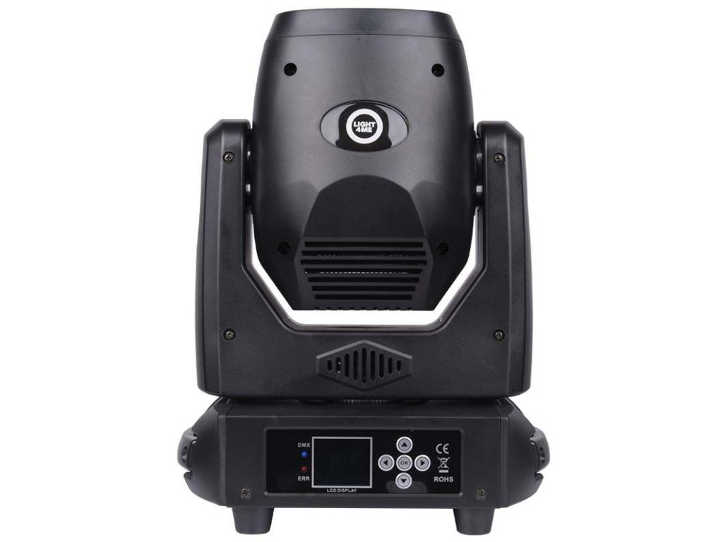 Reflektor sceniczny Light4Me Focus 100 Spot posiada 3-pinowe wejście i wyjście XLR do sterowania głowicą LED za pomocą protokołu DMX. Z przodu znajduje się praktyczny panel sterowania składający się z cyfrowego wyświetlacza i 4 przycisków. Za ich pomocą możemy zmieniać ustawienia w menu, a także wybrać jeden z czterech trybów pracy, które nas interesują: