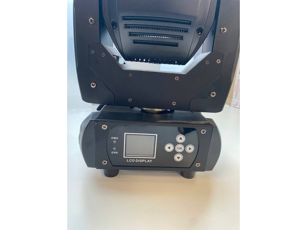 Urządzenie jest wyposażone w skuteczne programy świetlne z aktywnym trybem dźwięku. Głowicą steruje się za pomocą czterech przycisków i kolorowego wyświetlacza LCD. Aby w pełni wykorzystać możliwości głowic punktowych, zalecamy zakup większej ilości (4, 6, 8 szt.) i sterowanie za pomocą kontrolera dmx w wersji analogowej lub PC.