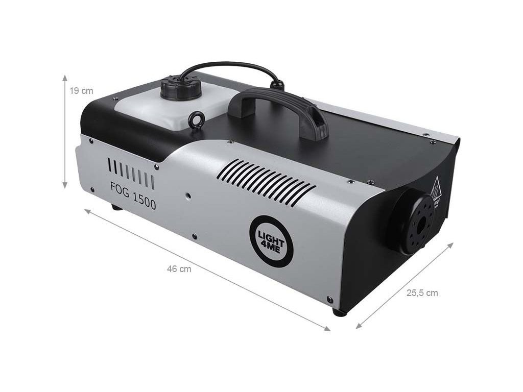 Light4Me Fog 1500 to kompaktowa i bardzo wydajna wytwornica mgły sterowana sterownikiem przewodowym lub bezprzewodowym pilotem, wyposażona w grzałkę o mocy 1500 W, dzięki której szybko się nagrzewa. Wytwornica jest doskonałym narzędziem pracy dla mobilnych DJ-ów, zespołów muzycznych oraz firm organizujących różnego rodzaju imprezy. Idealnie nadaje się na sceny, do klubów tanecznych, na dyskoteki, ale także na wesela lub imprezy sylwestrowe.