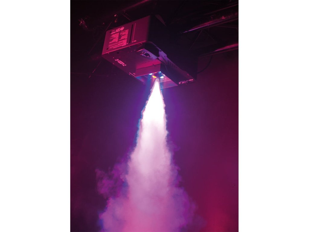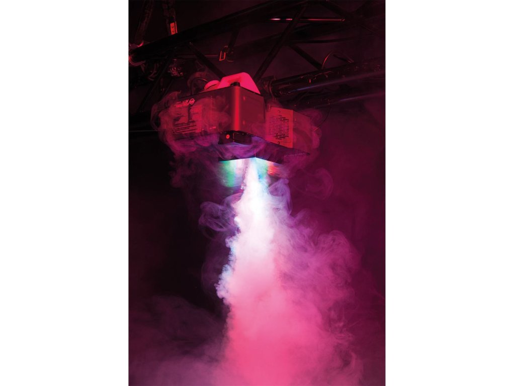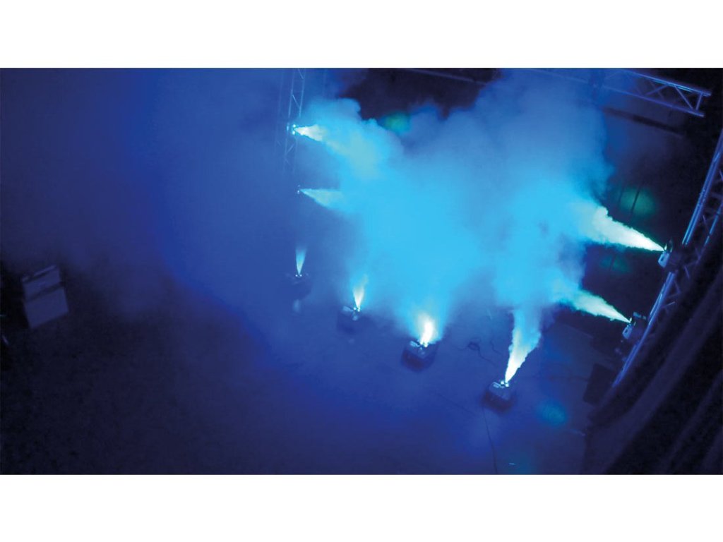 Fog Fury Jett może być używana pionowo i poziomo. Zbiornik można zamontować z przodu lub z tyłu urządzenia, aby wytwornica mogła kierować mgłę do góry lub na dół. W zestawie z wytwornicą Fog Fury Jett znajduje się bezprzewodowy pilot ADJ FFJWR.