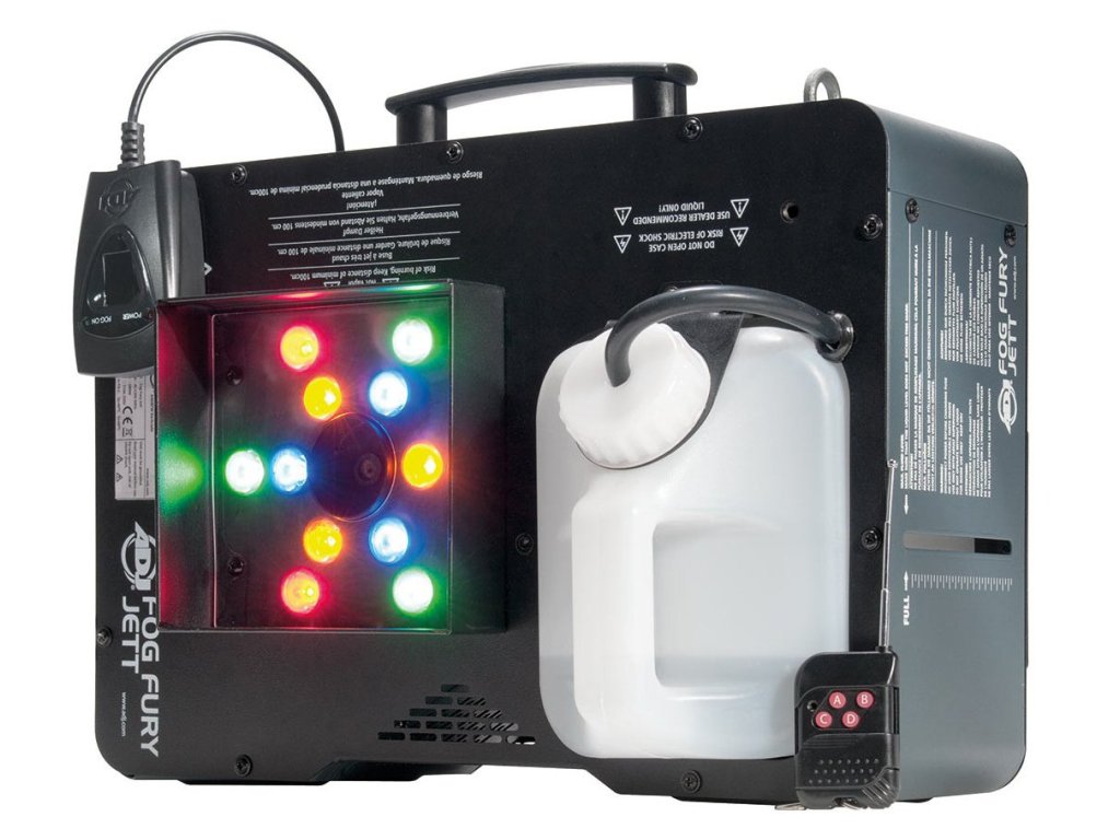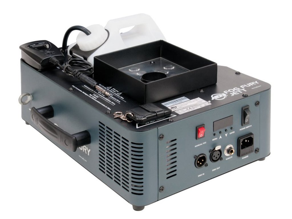 Fog Fury Jett firmy ADJ to szybka, pionowa wytwornica mgły, która miesza kolory z dwunastu diod LED RGBA o mocy 3 W. Nowy postęp w technologii elementu grzejnego ADJ umożliwia wytwornicy Fog Fury Jett wydmuchiwanie suchych, równomiernych obłoków mgły na wysokość 7 metrów w powietrze. Posiada specjalną konstrukcję elementu grzejnego, który wykorzystuje olej do przesyłania rurociągiem, zapobiegając w ten sposób zatykaniu i blokowaniu. Ponadto jest wyposażona w wysokowydajny system pompowy zapewniający optymalną wydajność. Wytwornica wykorzystuje technologię ETS (elektroniczny pomiar temperatury) firmy ADJ, aby zapewnić optymalny poziom ciepła bez konieczności podgrzewania między poszczególnymi wyrzutami mgły.
