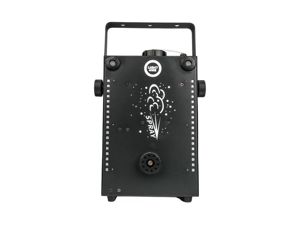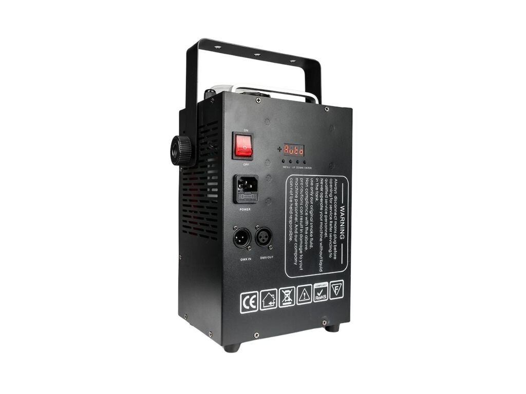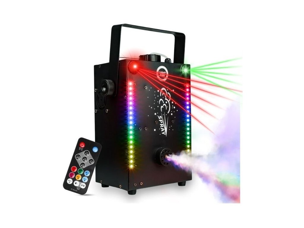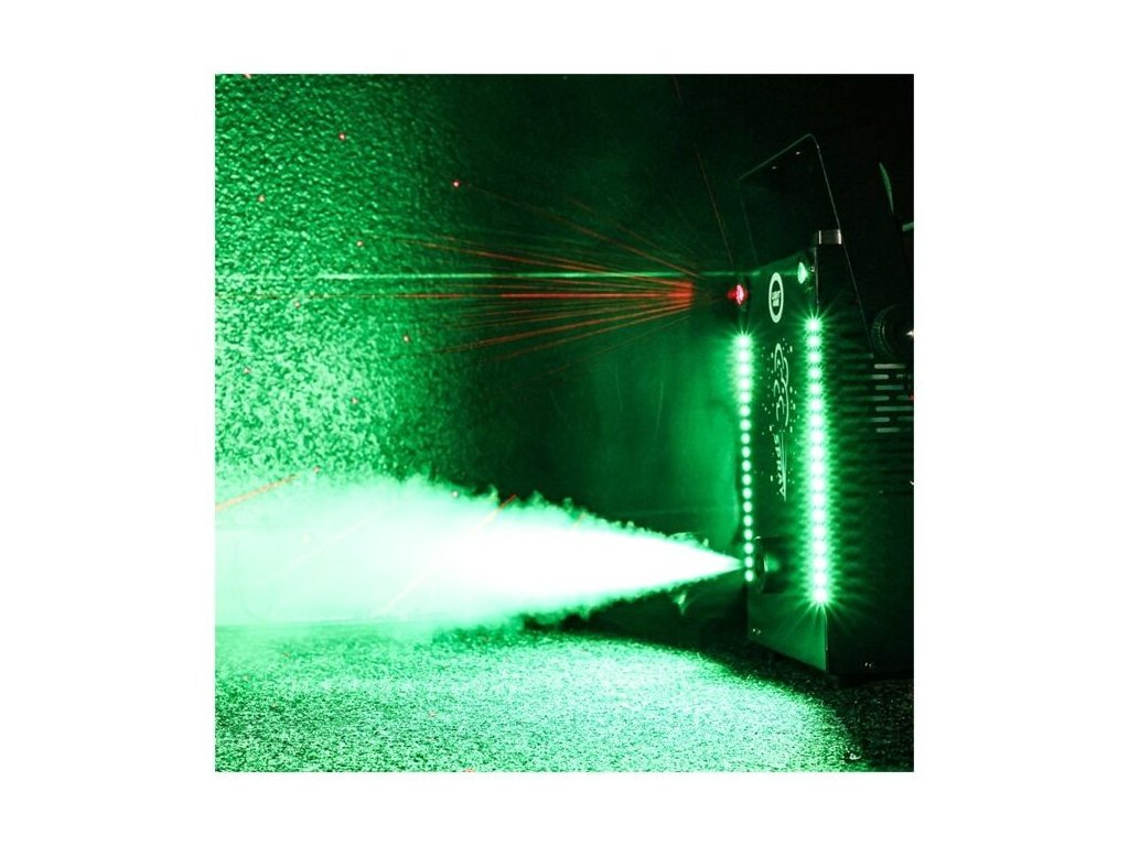 Urządzenie posiada cztery tryby pracy (auto, dźwięk, master/slave, DMX), timer oraz możliwość sterowania za pomocą wyświetlacza LED lub bezprzewodowego pilota IR. Dodatkowo urządzenie wyposażone jest w czerwony laser (120 mW) i zielony laser (150 mW), które uzupełniają efekty. Generator jest kompaktowy, łatwy w transporcie, wyposażony w zbiornik na płyn o pojemności 1 litra oraz złącza DMX zapewniające kompatybilność z innymi urządzeniami oświetleniowymi.