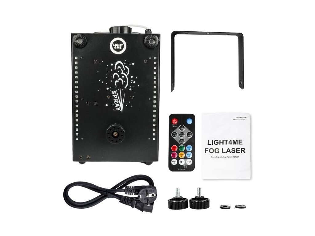 LIGHT4ME Fog Laser to profesjonalny generator dymu, który łączy efekty dymne i świetlne z 36x0,3W diodami RGB LED i laserem. To urządzenie oferuje siedem statycznych kolorów, dynamiczne efekty świetlne (Color Jump, Color Gradient, Color Pulse) i jest wyposażone w ściemniacz RGB do precyzyjnej regulacji kolorów podświetlenia dymu.