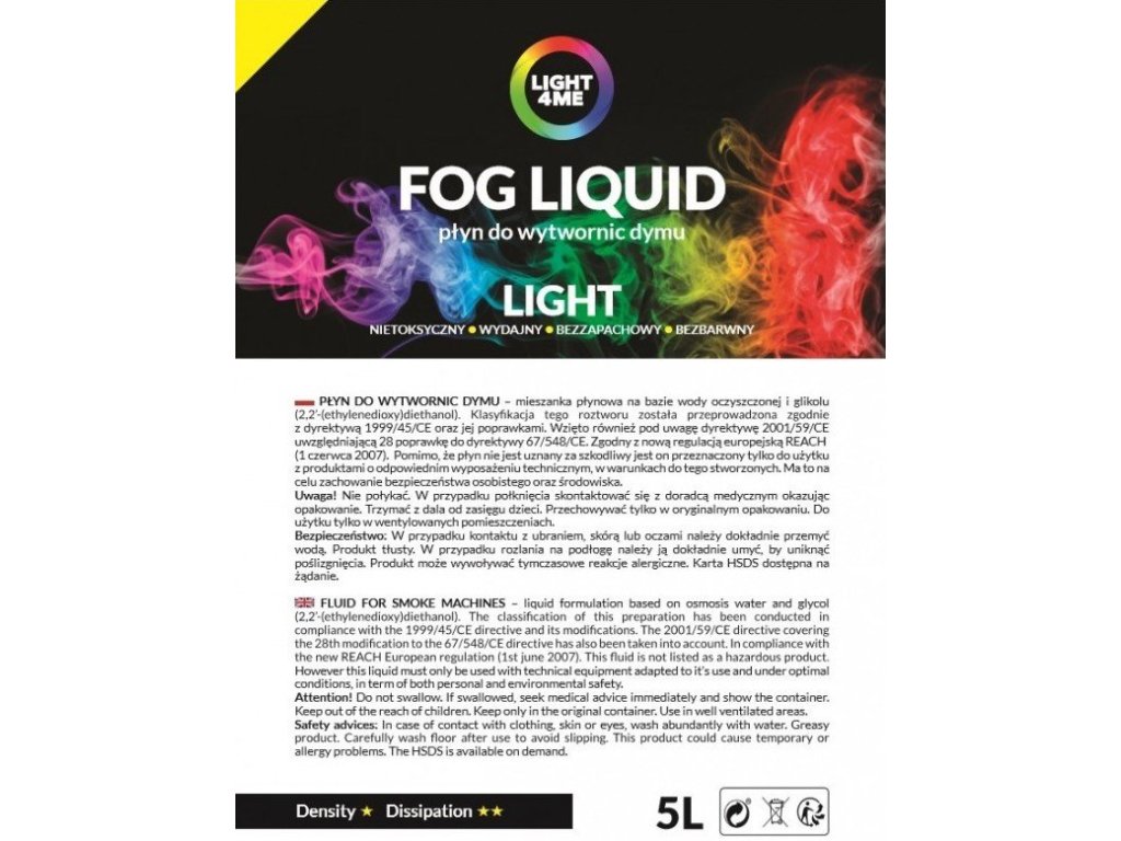 Płyn do wytwornic dymu. Roztwór jest bezwonny, bezbarwny i nietoksyczny, dlatego jest bezpieczny w użyciu.