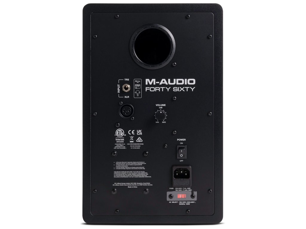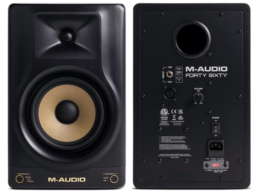 Forty Sixty to aktywny, dwudrożny monitor nowej generacji. Jest przeznaczony jako alternatywny odsłuch do miksu i masteringu w profesjonalnych studiach, a także jako odsłuch w reżyserkach, wozach transmisyjnych lub studiach domowych. Jest wyposażony w 6,5-calowy głośnik niskotonowy z membraną kevlarową i 1-calowy głośnik wysokotonowy z falowodem. Wzmacniacz mocy 100 W z bi-ampingiem zapewnia wystarczającą dynamikę i precyzję reprodukcji. Sygnał można doprowadzić do dwóch symetrycznych wejść na XLR (canon) i TRS 6,3 (duży jack). Dodatkowe źródło dźwięku można podłączyć przez Bluetooth. Wewnętrzny DSP z EQ dba o zrównoważoną i precyzyjną reprodukcję w całym paśmie częstotliwości. Za pomocą aplikacji M-Audio Studio Control możesz sterować ustawieniami reprodukcji, EQ, presetami i innymi parametrami. Nowa seria Forty marki M-Audio oferuje zupełnie nową jakość dźwięku, której nie znajdziesz w monitorach z tej samej półki cenowej.