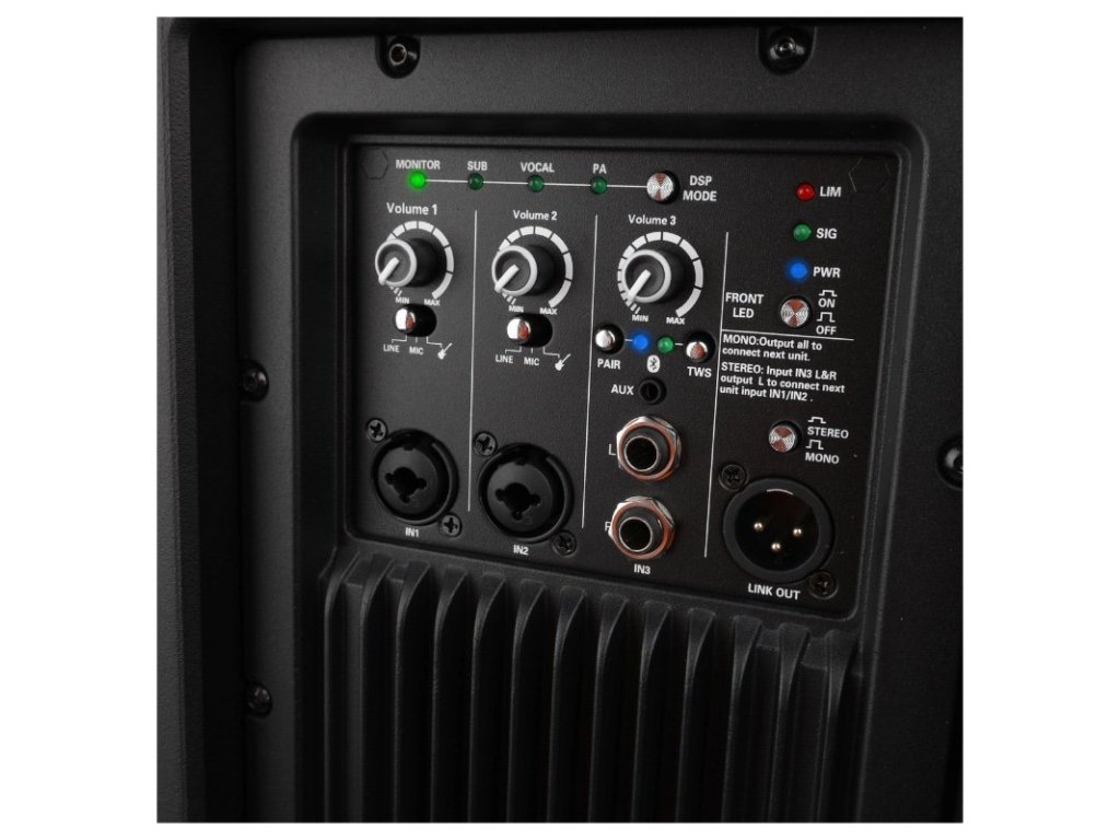 Wbudowany wzmacniacz klasy D (LF) i AB (HF) gwarantuje doskonałą jakość i krystalicznie czysty dźwięk. Dzięki czułości 93 dB i SPL 122 dB dźwięk jest nie tylko bardzo czysty, ale także dobrze słyszalny. Głośnik oferuje cztery ustawienia DSP - Monitor, Sub, Vocal, PA - co ułatwia dostosowanie głośnika do różnych scenariuszy użytkowania. Szerokie pasmo przenoszenia zapewnia doskonałą głębię tonów w całym słyszalnym zakresie.