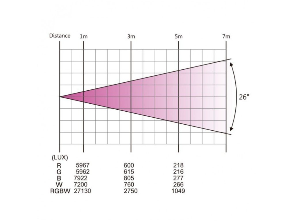 - Źródło światła: 7x12W RGBW LED (4w1), 60x0,2W RGB LED