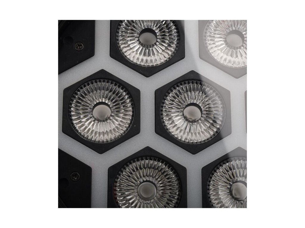 Urządzenie obsługuje różne tryby pracy, takie jak auto, dźwięk, master/slave i DMX, oraz umożliwia zaawansowane sterowanie poszczególnymi pikselami LED (Pixel Control), co oferuje szerokie możliwości personalizacji efektów wizualnych. Ponadto reflektor zapewnia możliwość wyświetlania aktualnej temperatury i wyłączenia wyświetlacza dla większego komfortu użytkownika. Dzięki złączom zasilania Truecon oraz 3-pinowym wejściom i wyjściom DMX zapewniona jest bezpieczna i niezawodna łączność z innymi urządzeniami. Urządzenie jest wyposażone w pasywny system chłodzenia i uchwyt montażowy dla łatwej instalacji.