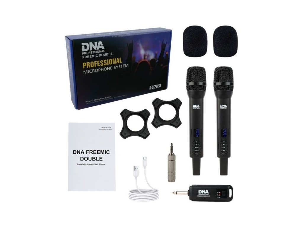 DNA FREEMIC DOUBLE to profesjonalny, bezprzewodowy zestaw mikrofonowy, który oferuje wyjątkową jakość dźwięku dzięki zaawansowanej technologii 2,4 GHz, zapewniającej stabilne połączenie między odbiornikiem a nadajnikami ręcznymi. Doskonała czułość i przyzwoity stosunek sygnału do szumu gwarantują najwyższą jakość rejestrowanego dźwięku. Dodatkowo urządzenie jest bardzo łatwe w obsłudze, a podłączenie go do zewnętrznego urządzenia audio nie będzie stanowić problemu dla żadnego użytkownika. Zestaw doskonale sprawdzi się jako system nagłośnieniowy dla zespołów weselnych, agencji eventowych, animatorów, różnego rodzaju instytucji kulturalnych i edukacyjnych, a także jako mikrofon do karaoke.