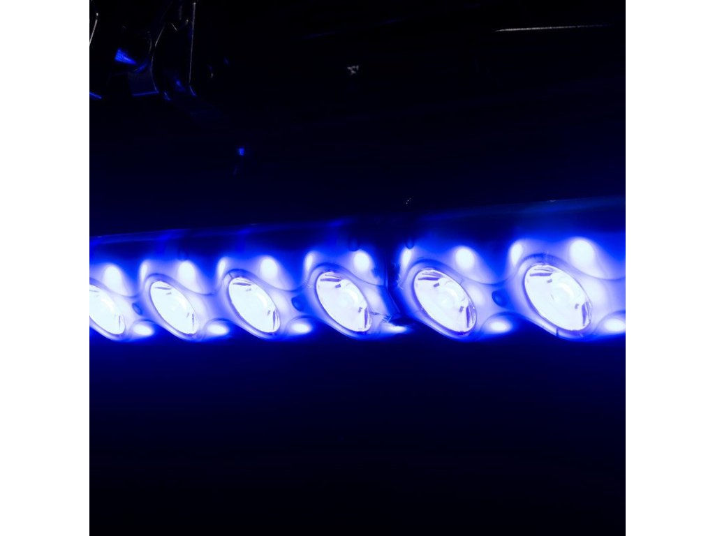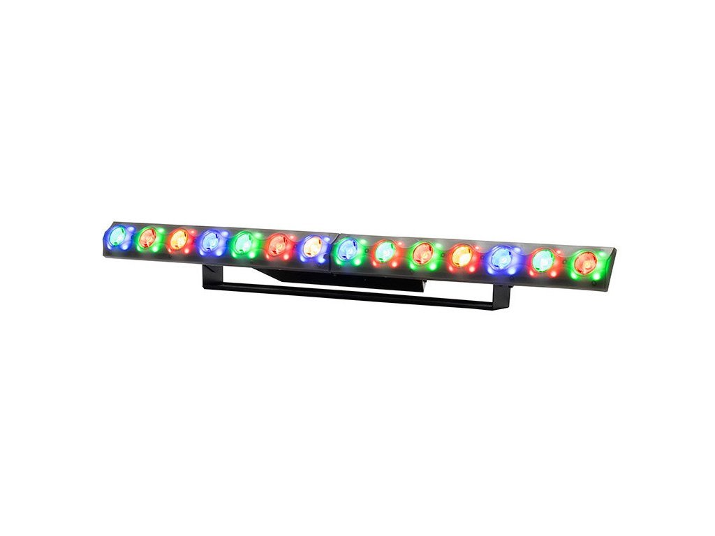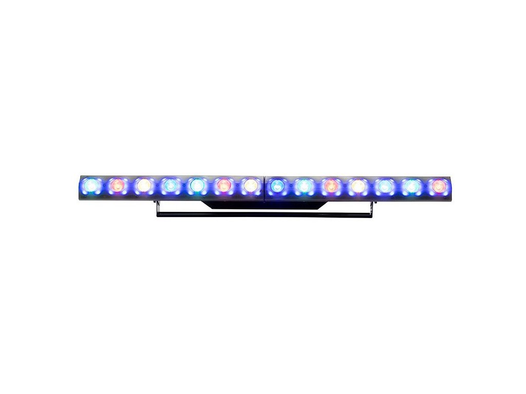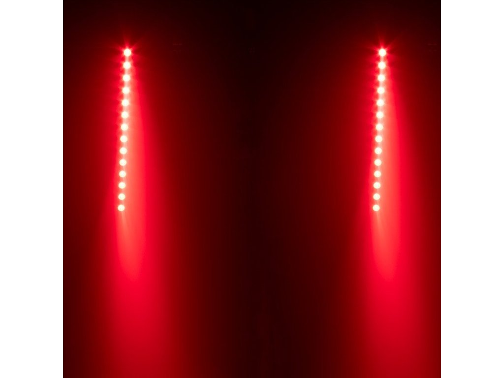 Eliminator Lighting Frost FX BAR RGBW to 1-metrowa liniowa oprawa oświetleniowa, która tworzy kolorowe błyski i zapierający dech w piersiach efekt pościgu kolorów. Posiada dwa rodzaje kolorowych diod LED w jednej oprawie. Posiada czternaście 3W diod RGBW LED z soczewką ACL z przodu urządzenia, które tworzą intensywne efekty kolorowej wiązki. Dodatkowo, posiada 84 diody RGB SMD LED za soczewką z matowego plastiku, które tworzą żywe kolorowe wzory. Oba zestawy diod LED działają niezależnie.