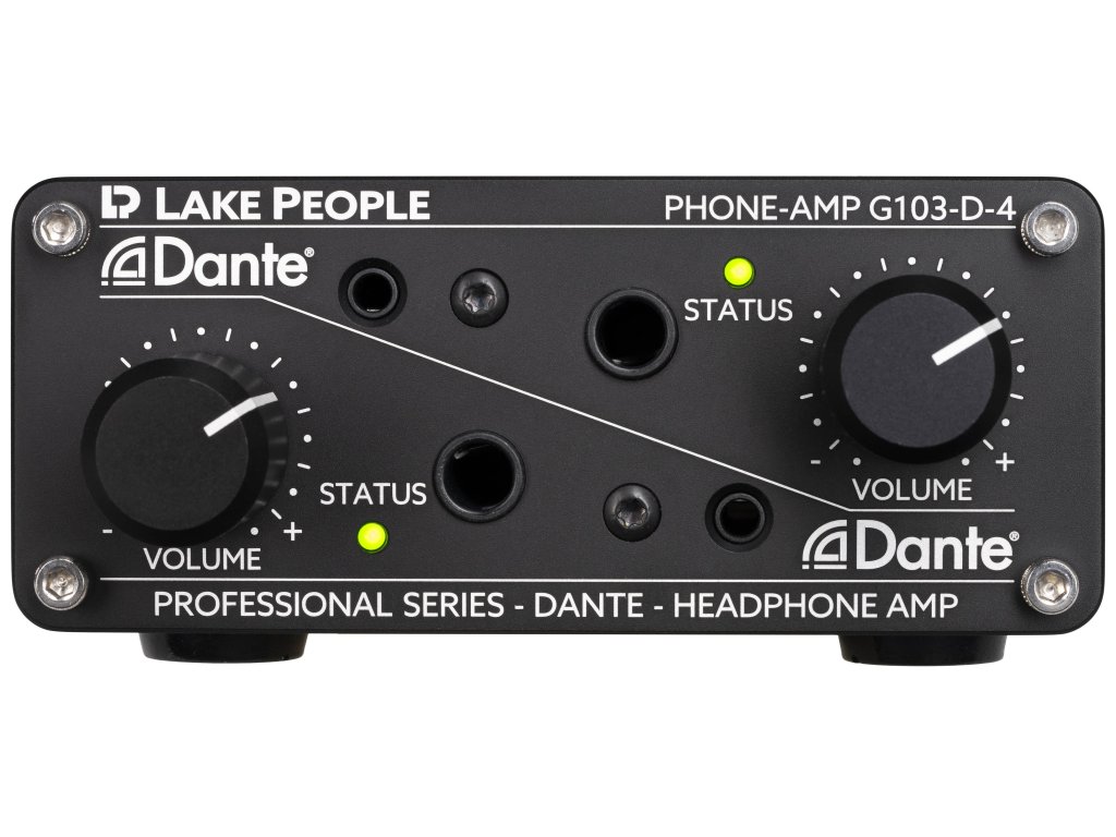 G103D4 Dante to podwójny wzmacniacz słuchawkowy przeznaczony do sieci DANTE. Przeznaczony do studiów audio i wideo, produkcji telewizyjnych, produkcji na żywo, teatrów, centrów konferencyjnych i wszędzie tam, gdzie do przesyłania dźwięku wykorzystywana jest sieć Dante. Wyposażony jest w wejście DANTE 4/4 i dwa niezależne stereofoniczne wzmacniacze słuchawkowe. Dla każdego wzmacniacza można wybrać inne kanały protokołu Dante jako źródło.