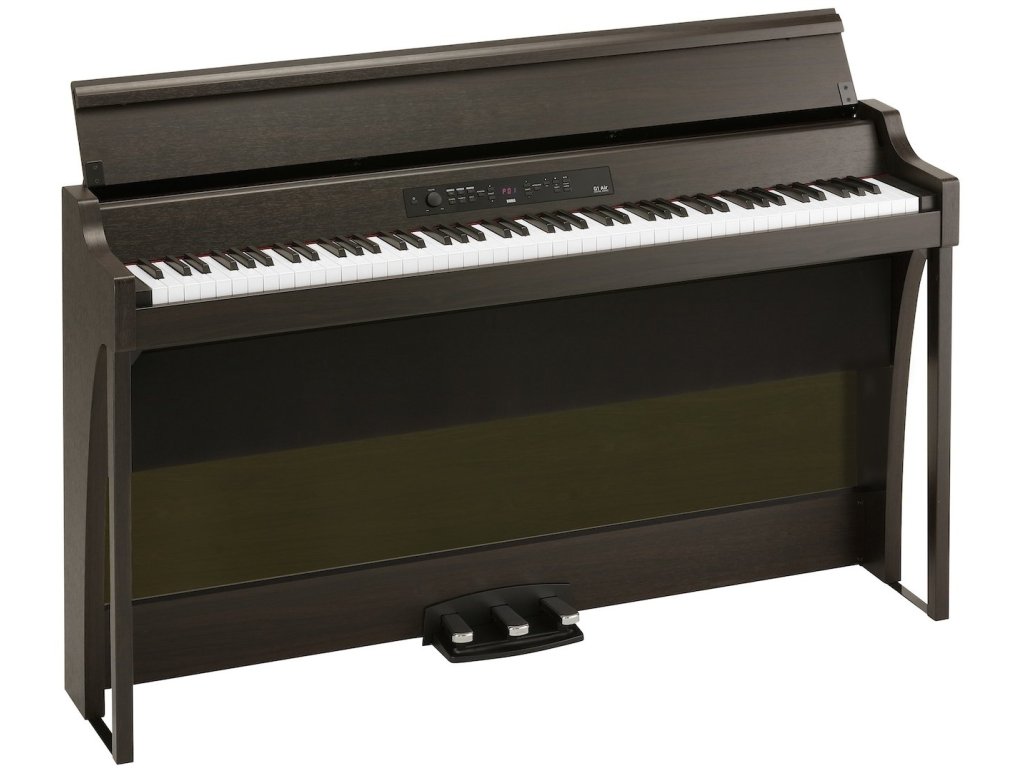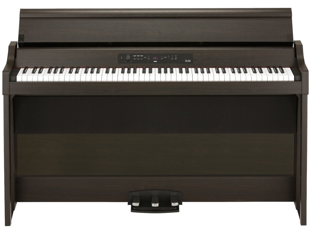 Nowoczesny design charakteryzuje się ponadto bardzo kompaktowymi wymiarami i głębokością zaledwie 29 cm, dzięki czemu G1 zmieści się naprawdę prawie wszędzie. Klawiatura jest chroniona wysuwaną pokrywą, która po otwarciu zamienia się w pełnowartościowy pulpit na nuty. Aby ładnie pasował do koloru Twojego pokoju, możesz wybrać G1 w jednym z wariantów kolorystycznych - czarnym, białym lub brązowym.