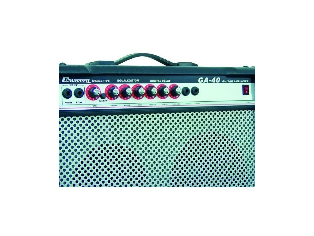 Combo gitarowe, wzmacniacz 40 W RMS, głośniki 8“ + 6", zakres częstotliwości 20 Hz - 15 kHz, 2 x wejście 6,3 mm jack (High i Low), regulacja Gain i Volume z wyłączanym efektem overdrive, trzypasmowy equalizer, wbudowany cyfrowy delay z regulacją Lenght i Depth, wyjście liniowe 6,3 mm jack i wyjście 6,3 mm stereo jack na słuchawki. Wykończenie czarny winyl, wymiary 490 x 380 x 245 mm, waga 11 kg.