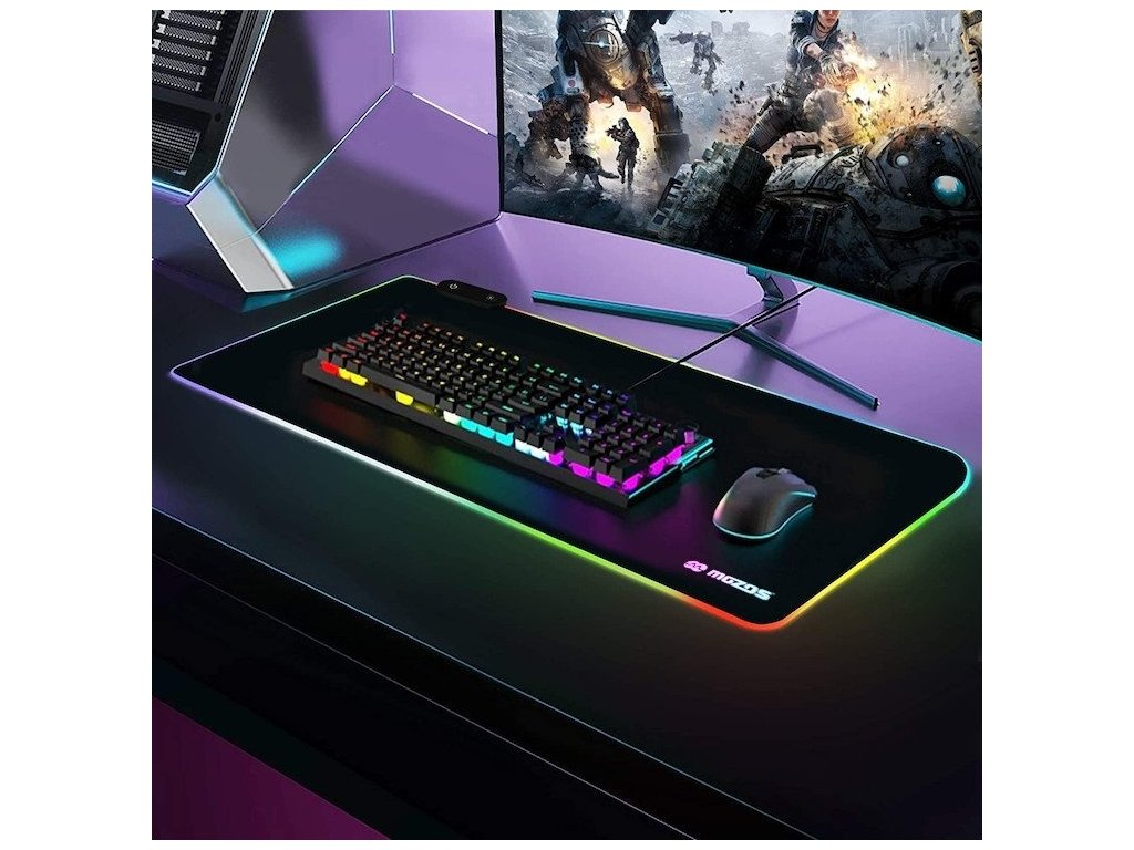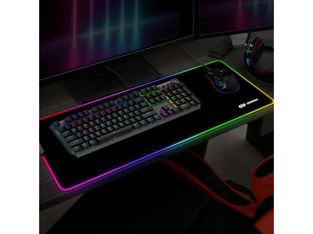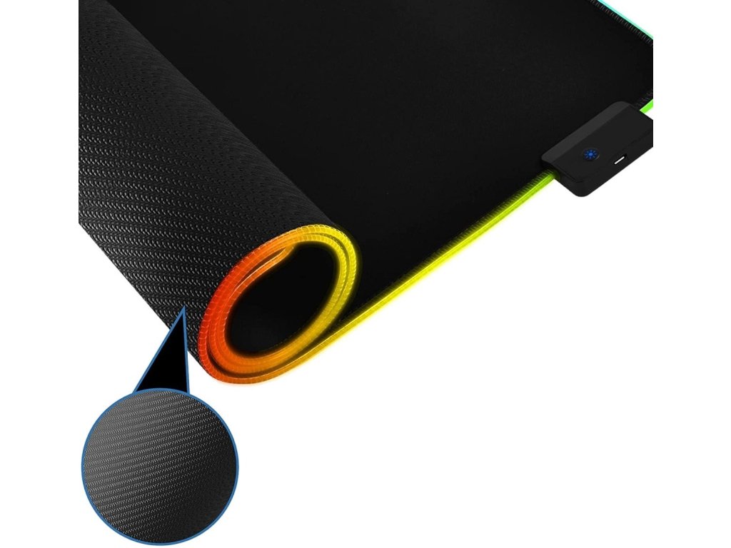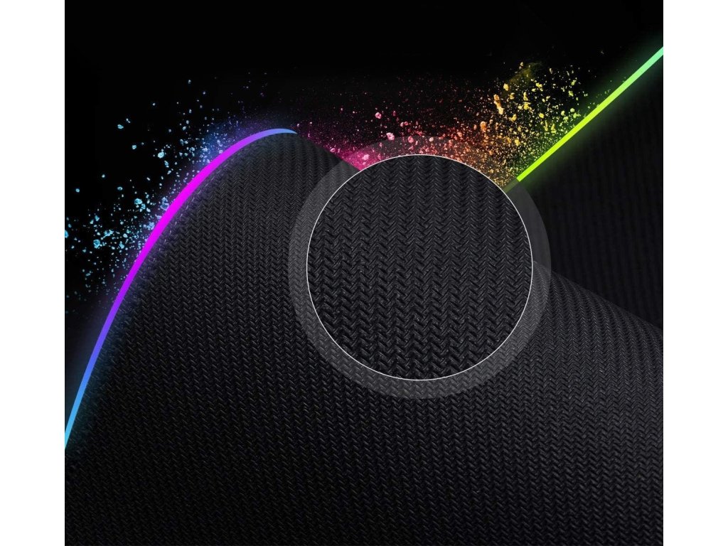 Stylowa, podświetlana podkładka gamingowa pod mysz komputerową, klawiaturę i inne urządzenia, których potrzebujesz do pracy na komputerze stacjonarnym lub laptopie. Nadaje się do domowych studiów nagraniowych, biur, a przede wszystkim dla zapalonych graczy, którzy potrzebują maksymalnego komfortu podczas grania. Podkładka wykonana jest z matowego, wodoodpornego materiału, a spód posiada antypoślizgową gumę. Podkładkę zasilasz za pomocą kabla USB i adaptera o napięciu 5 V.