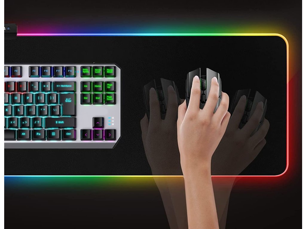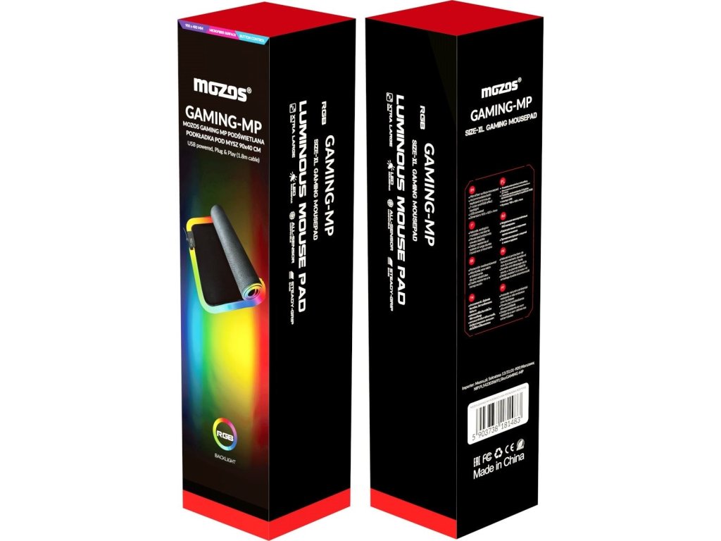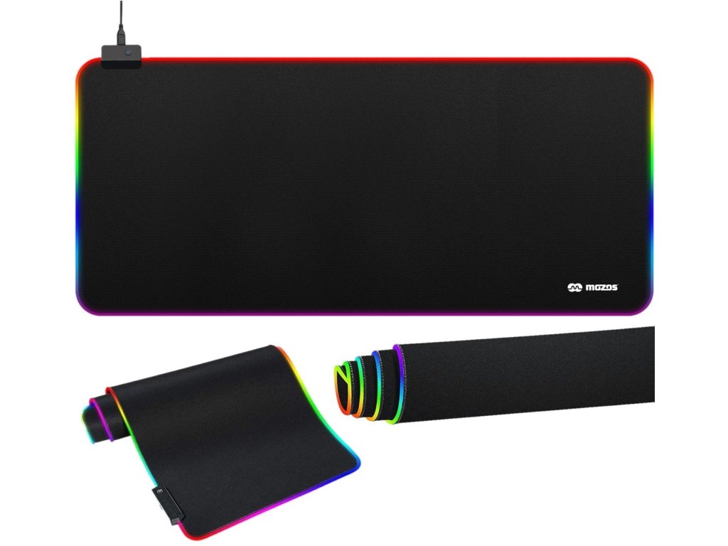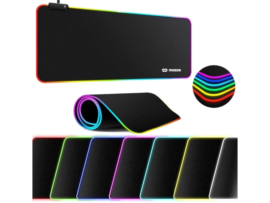 Stylowa, podświetlana podkładka gamingowa pod mysz komputerową, klawiaturę i inne urządzenia, których potrzebujesz do pracy na komputerze stacjonarnym lub laptopie. Nadaje się do domowych studiów nagraniowych, biur, a przede wszystkim dla zapalonych graczy, którzy potrzebują maksymalnego komfortu podczas grania. Podkładka wykonana jest z matowego, wodoodpornego materiału, a spód posiada antypoślizgową gumę. Podkładkę zasilasz za pomocą kabla USB i adaptera o napięciu 5 V.