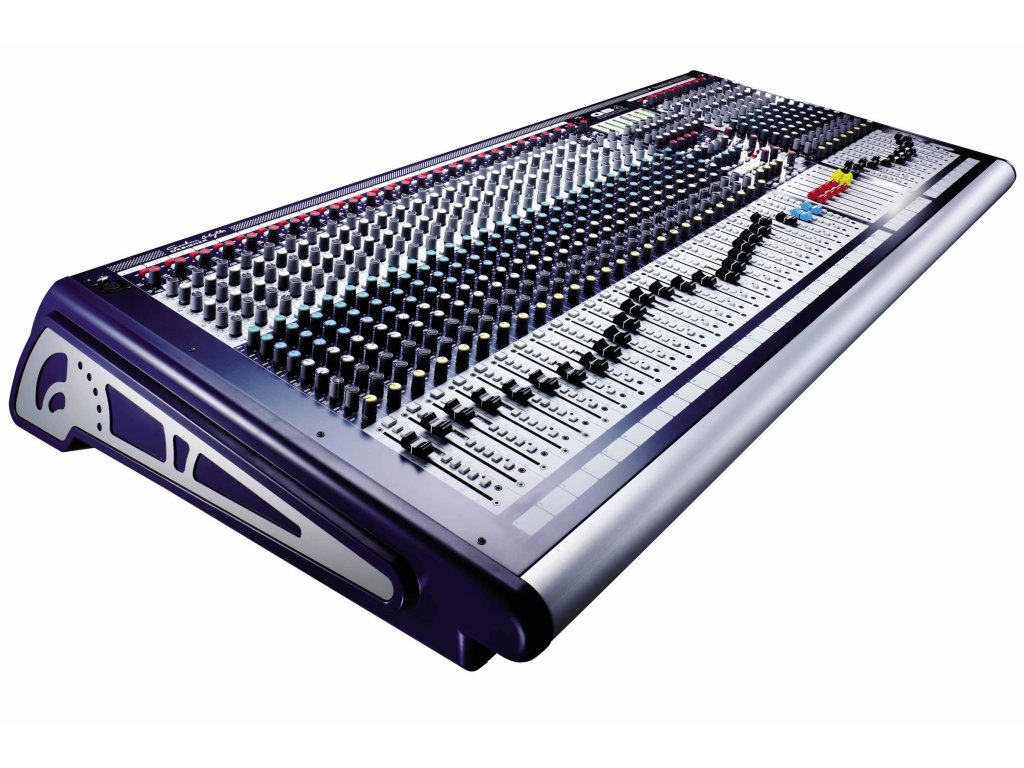 - Dodatkowe wyposażenie wejść stereo: przełącznik mono (L / R), wyłączane zasilanie Phantom 48 V, przełącznik fazy, Gain, Balance, przełącznik podgrup (1-4), przełącznik wyjść (L, R, C), przełącznik grup Mute (1 - 4), PFL, 4-segmentowy wskaźnik poziomu LED